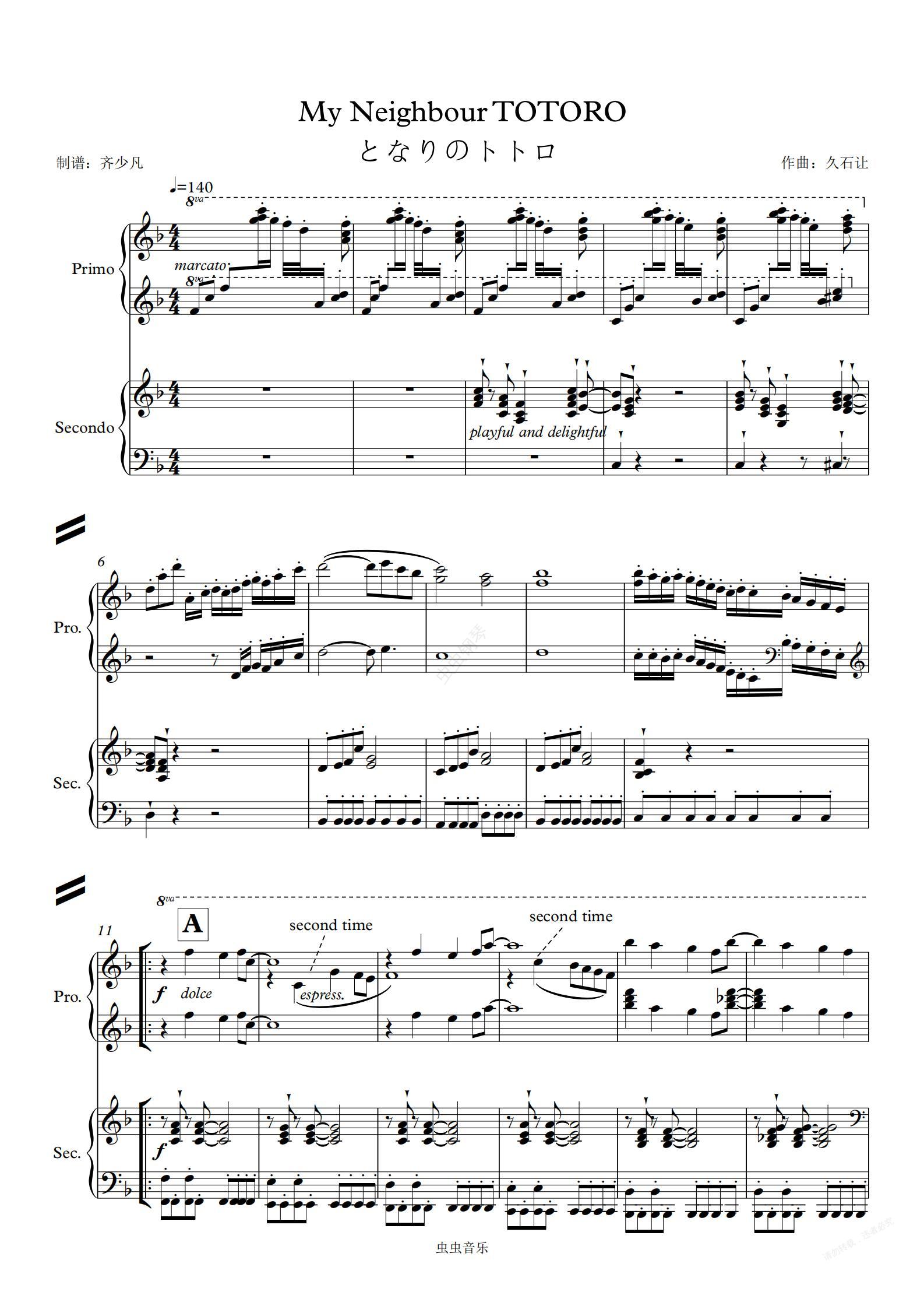 钢琴谱:【四手联弹】我邻居家的龙猫
