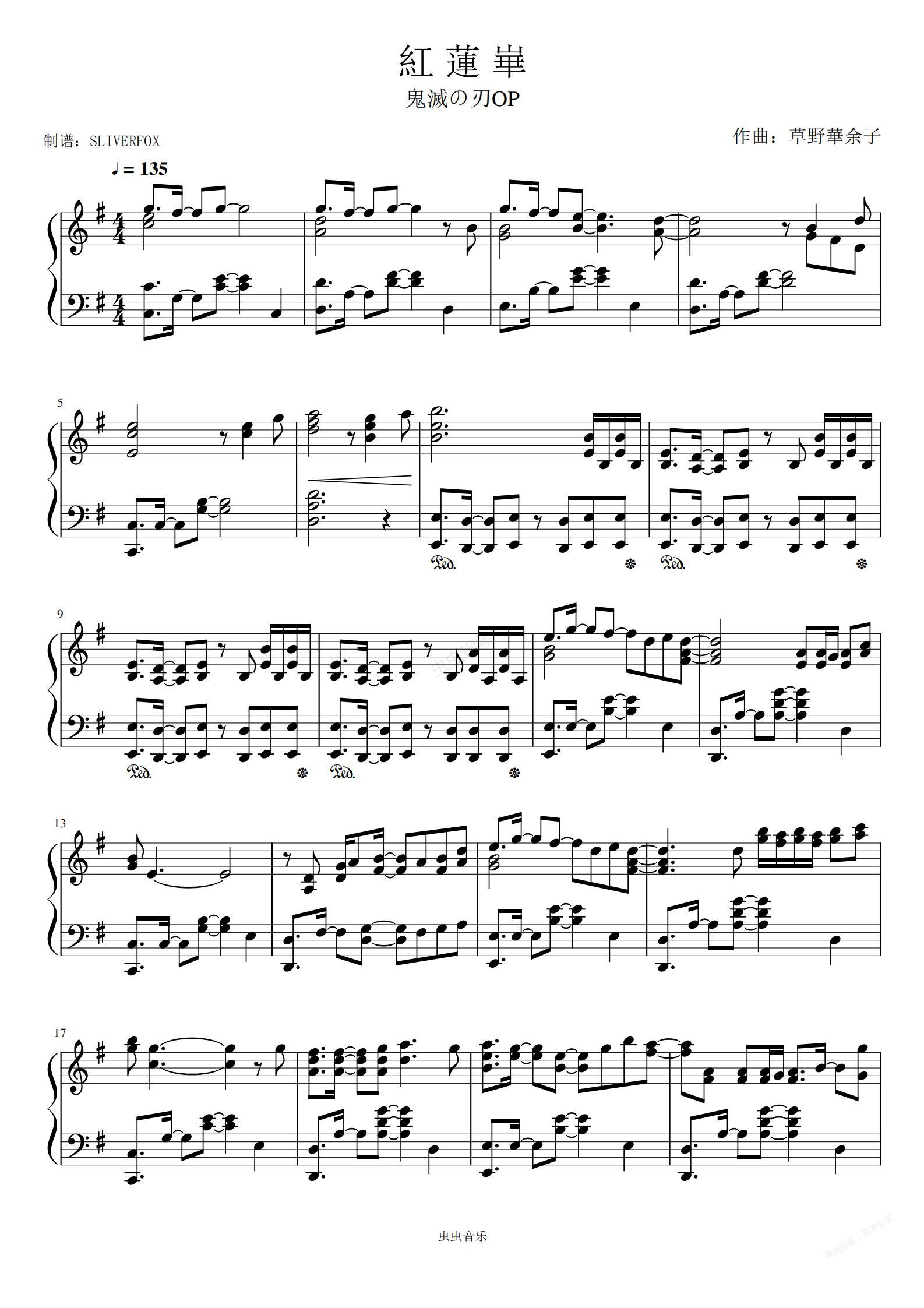 钢琴谱:红莲华紅蓮華《鬼灭之刃》片头曲 完整版