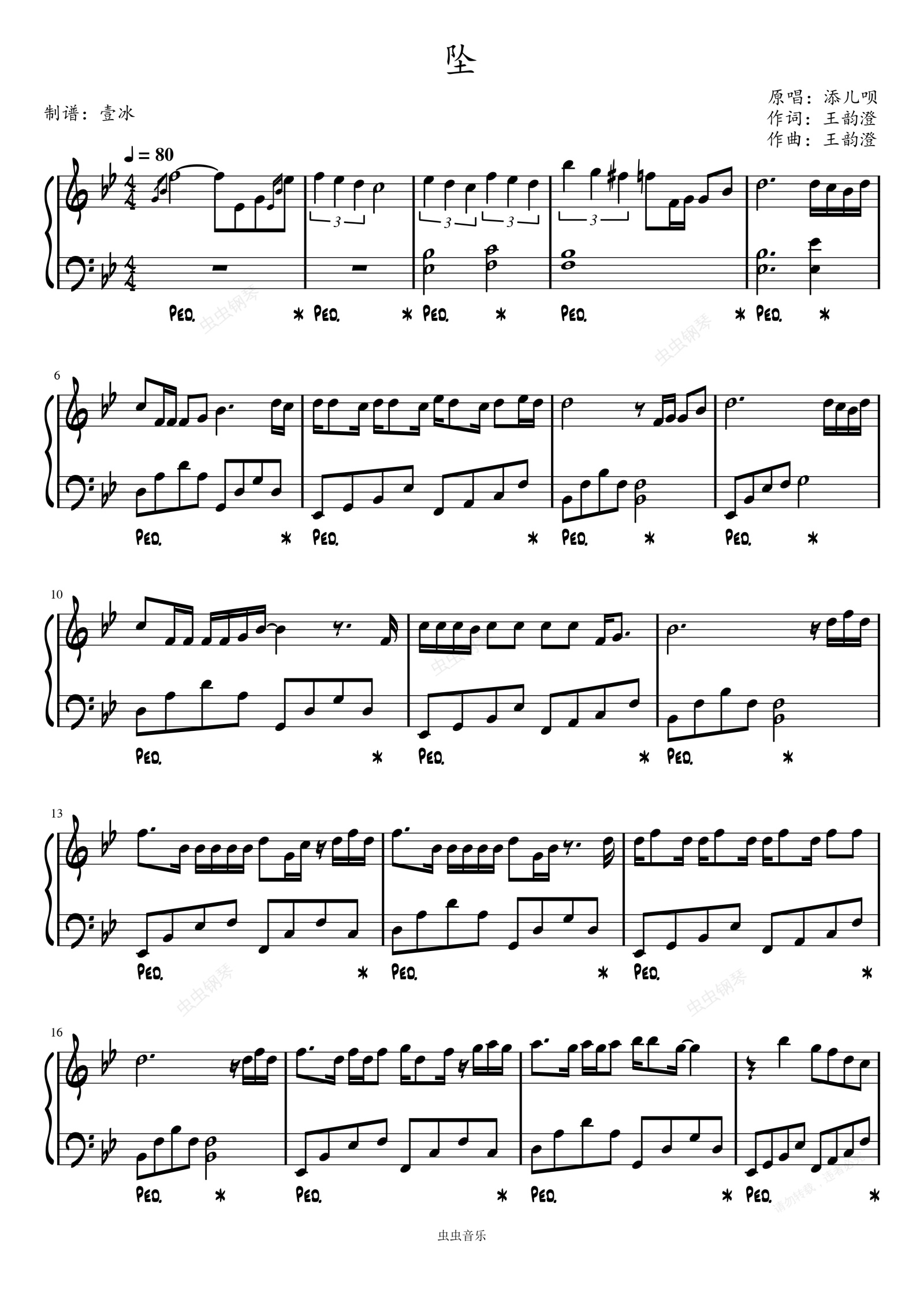 钢琴谱:坠//添儿呗-壹冰钢琴版