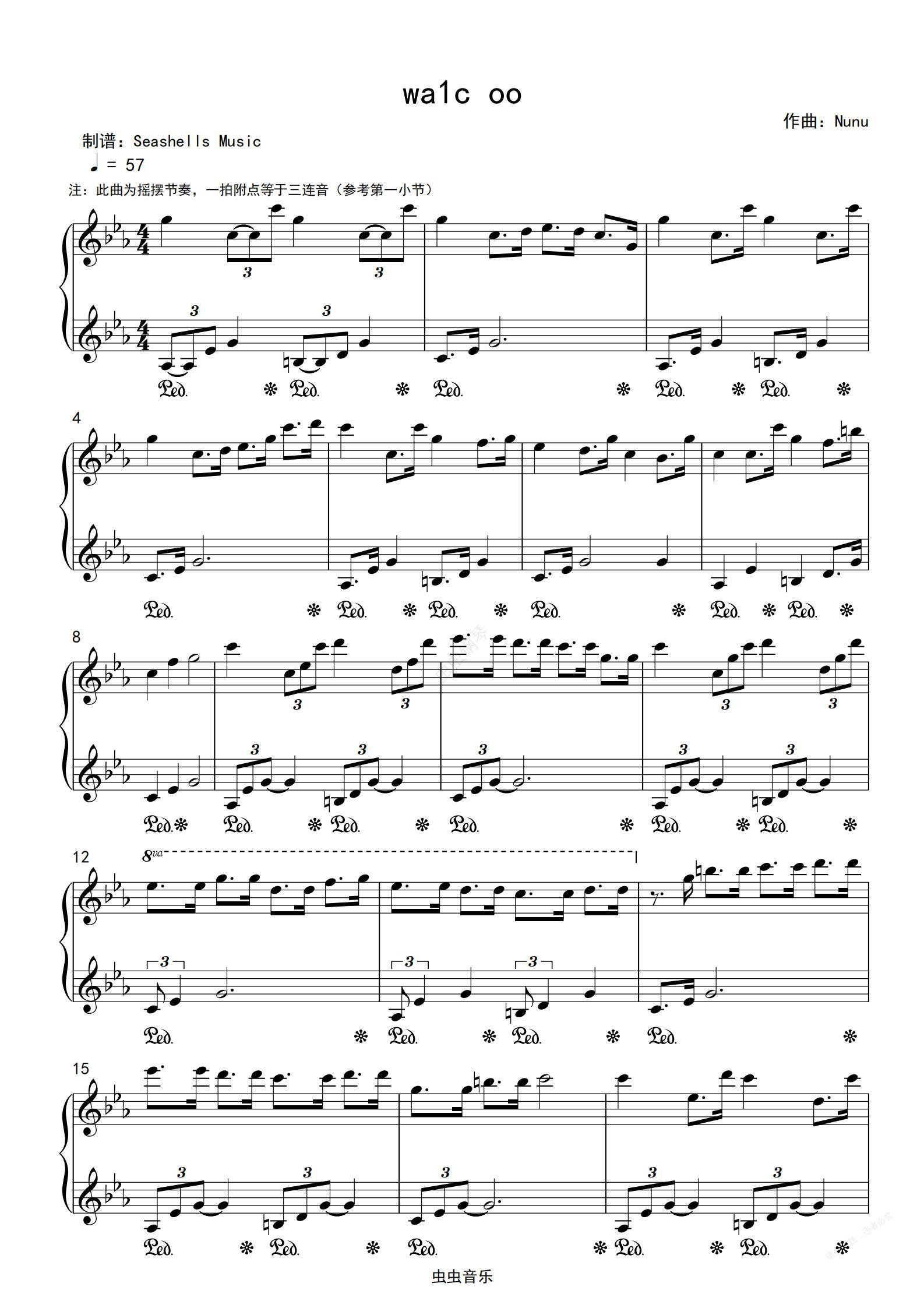 钢琴谱:Nunu - 《wa1c oo》 独奏钢琴谱