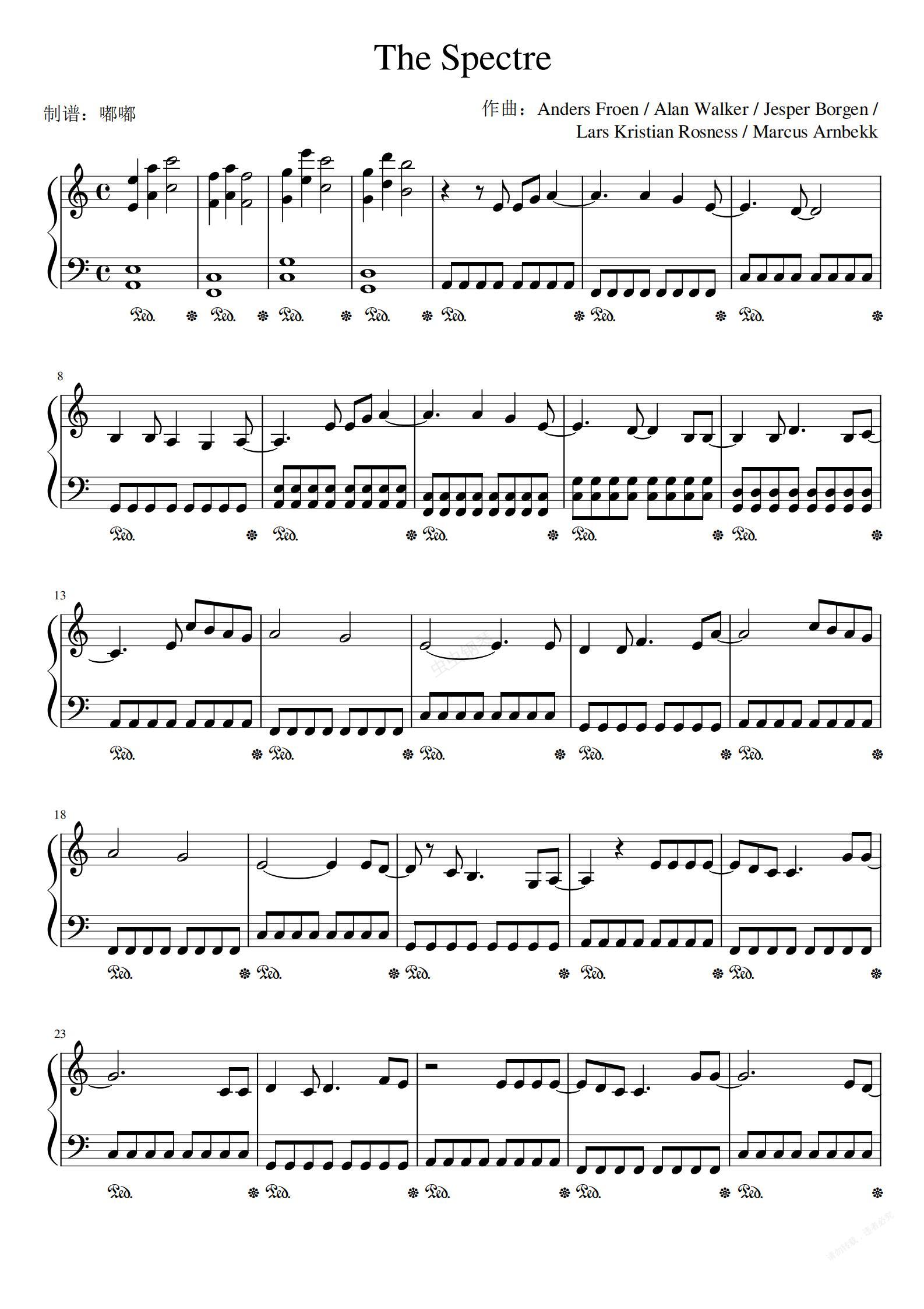 钢琴谱:The Spectre(C调)——Alan Walker