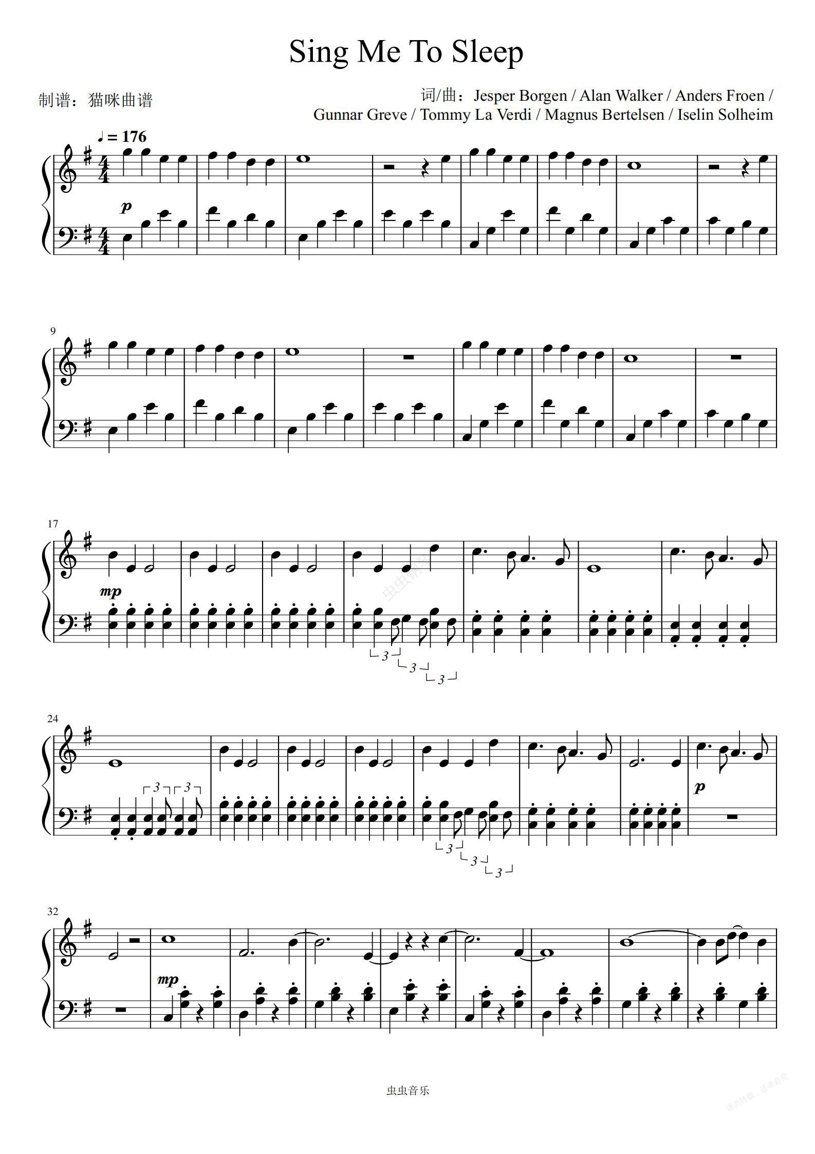 钢琴谱:Sing Me To Sleep