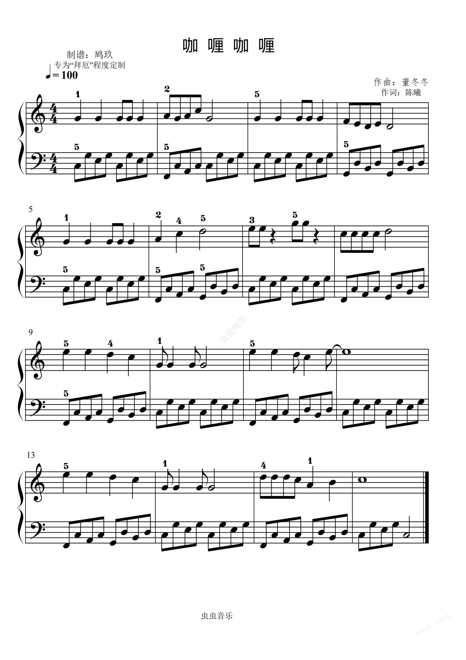 钢琴谱:咖喱咖喱(拜厄版本)