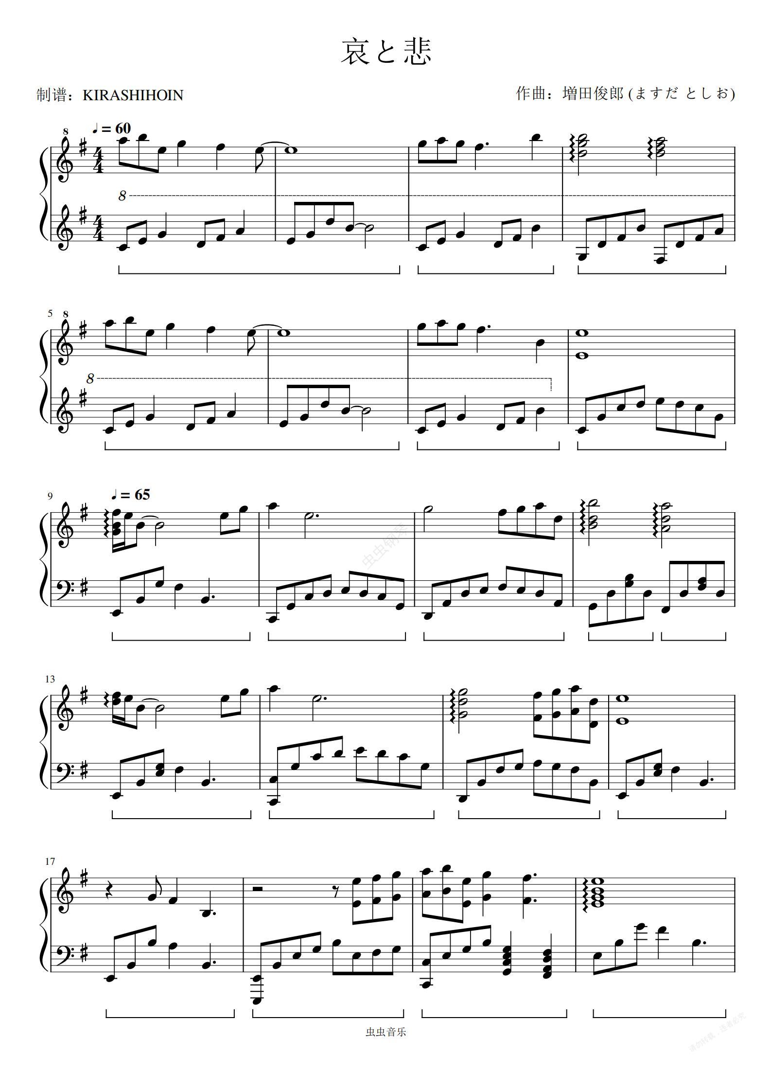 钢琴谱:哀と悲(《火影忍者》插曲)