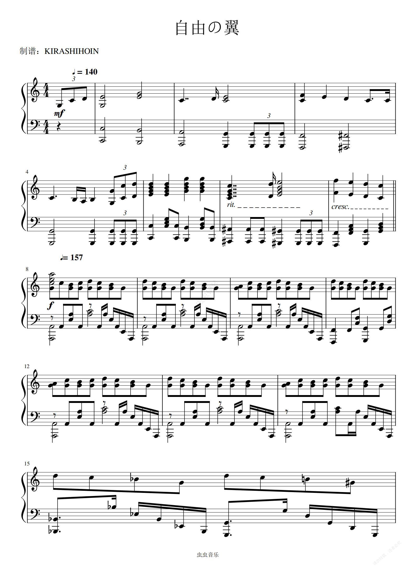 钢琴谱:自由之翼/自由の翼(《进击的巨人 第一季》OP)