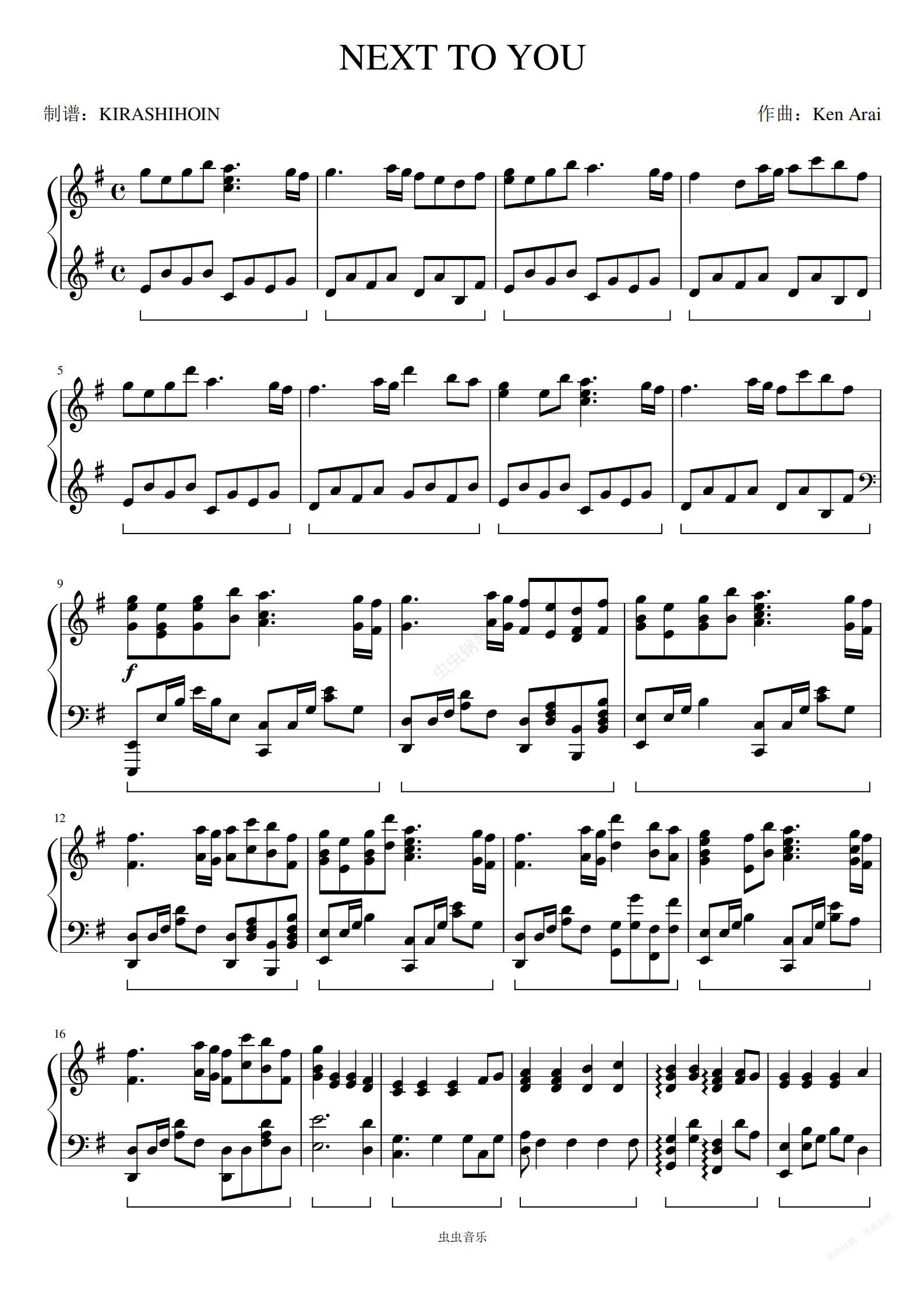 钢琴谱:NEXT TO YOU(《寄生兽 生命的准则》插曲)