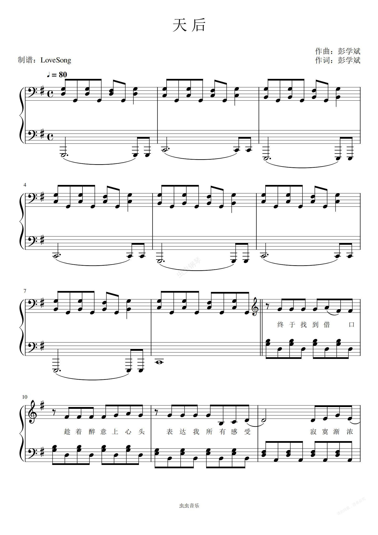 钢琴谱:陈势安 天后 带歌词 钢琴演奏版