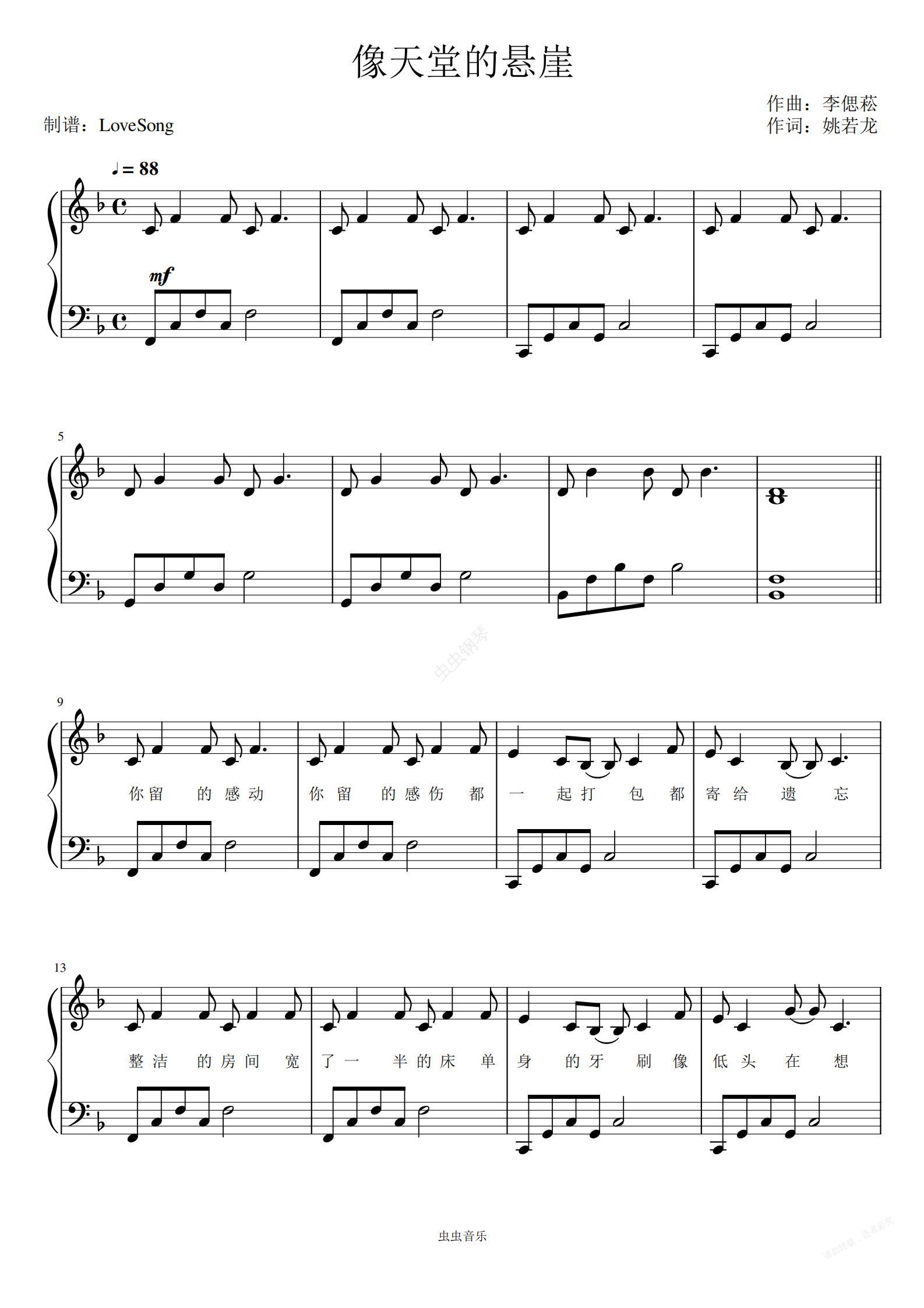 钢琴谱:李佳薇 像天堂的悬崖 演奏版带歌词