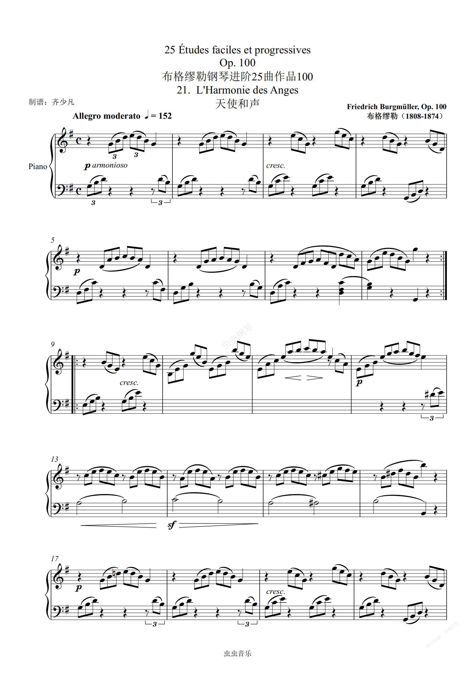 钢琴谱:【初学者】第21首 天使和声-布格缪勒25首钢琴进阶练习曲 Op. 100