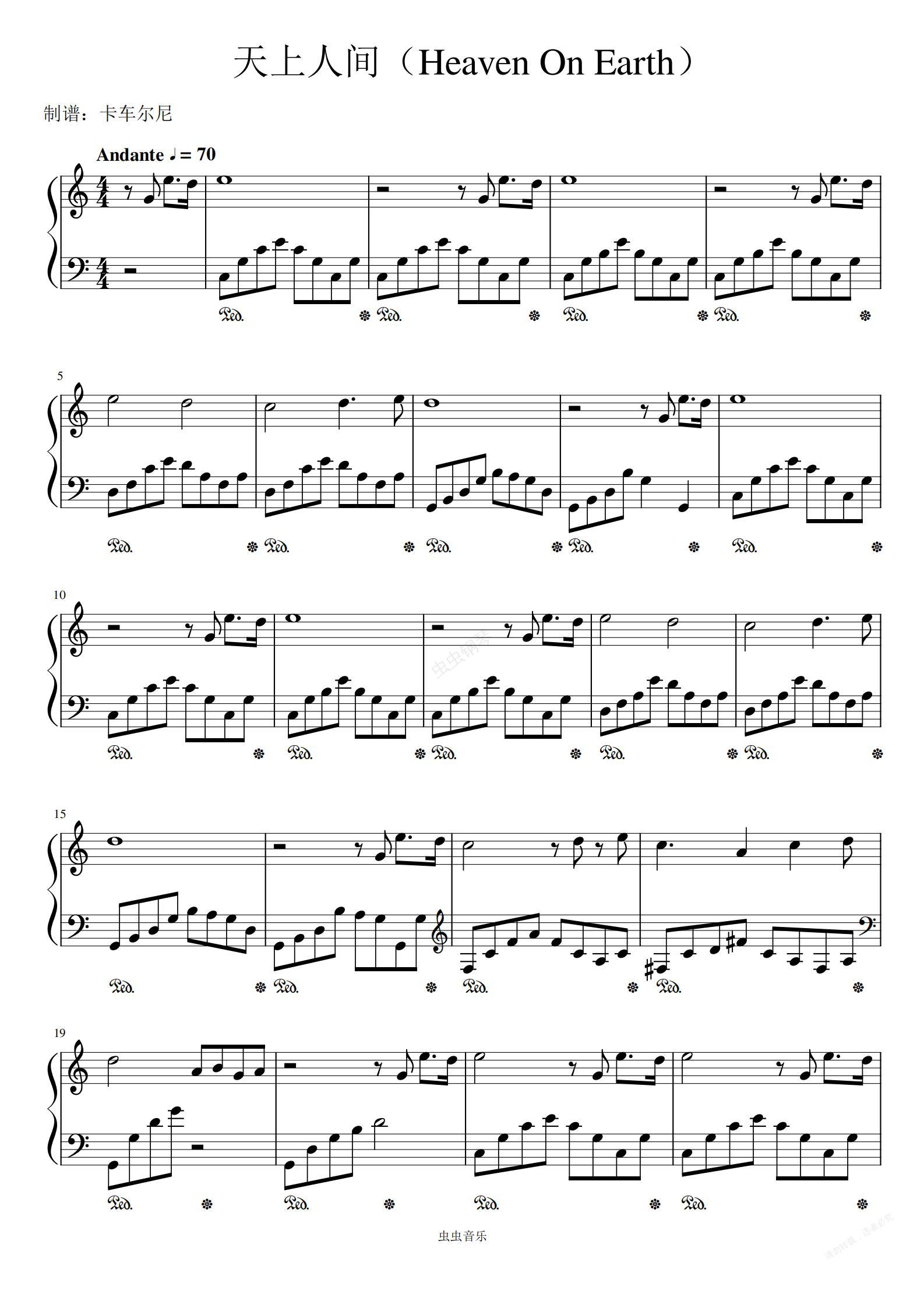 钢琴谱:天上人间(Heaven On Earth)简单唯美版