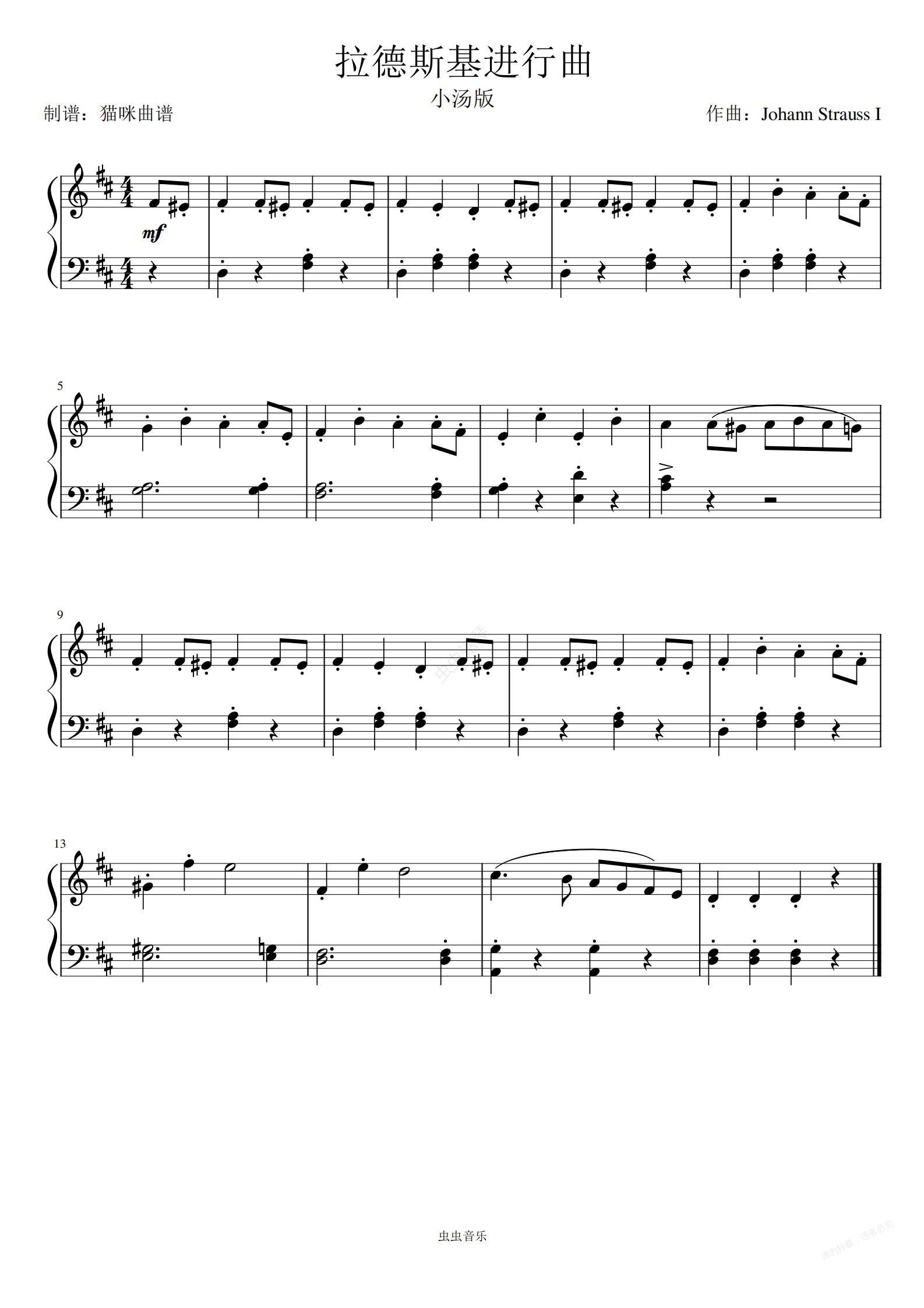 钢琴谱:拉德斯基进行曲(小汤版)Radetzky March