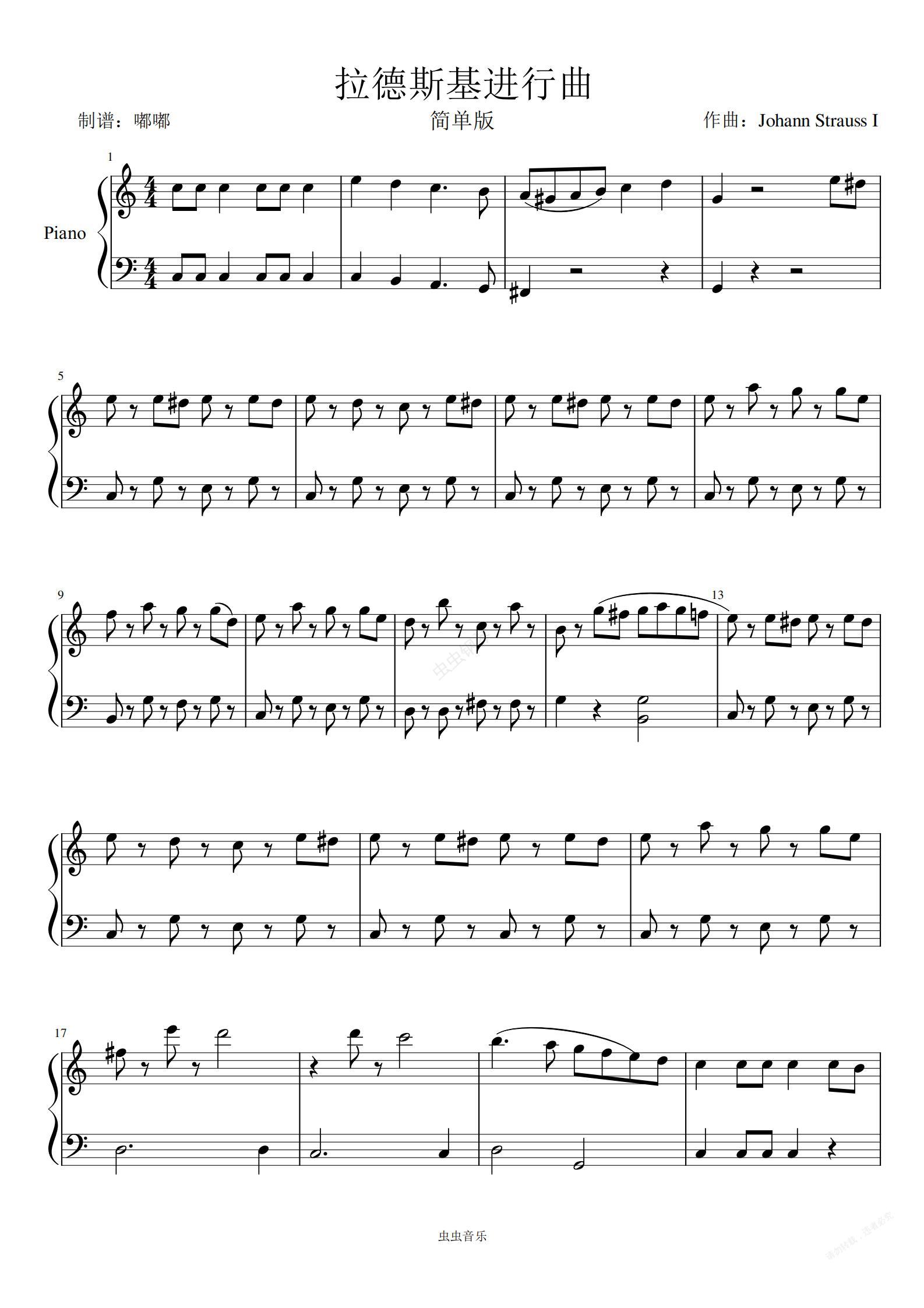 钢琴谱:《拉德斯基进行曲》C调简单版——老约翰·施特劳斯 [奥]