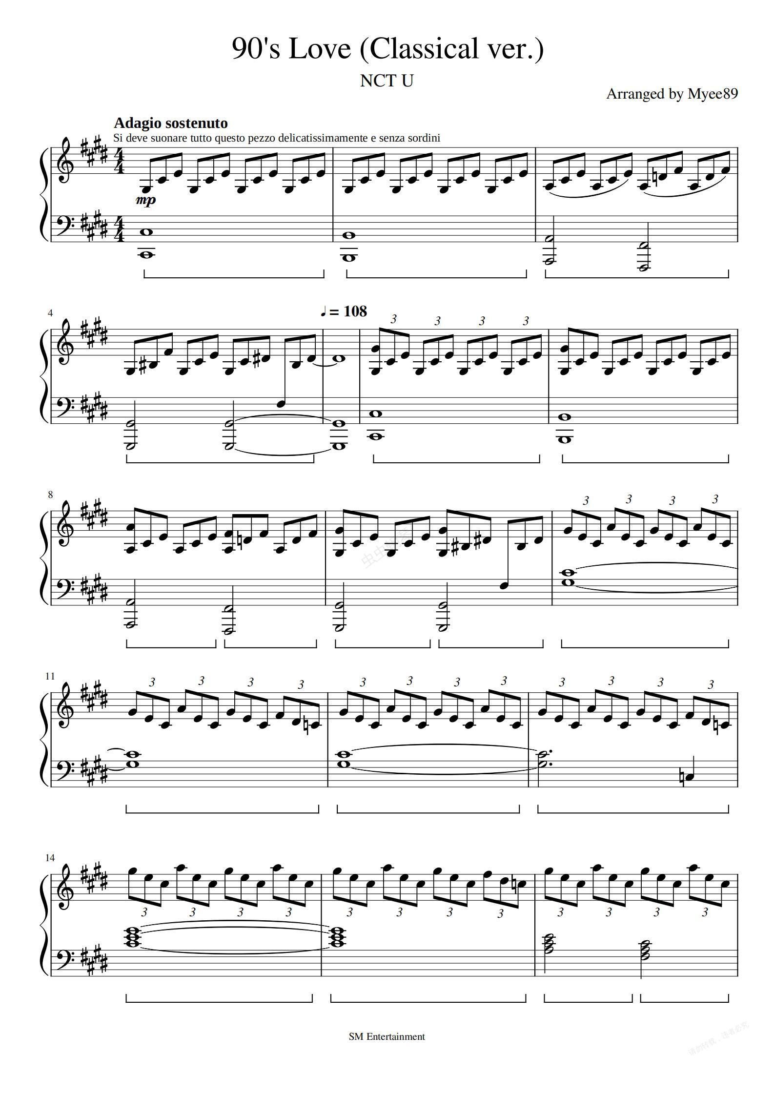 钢琴谱:【伪高大上改编】NCT U - 90's Love 钢琴谱