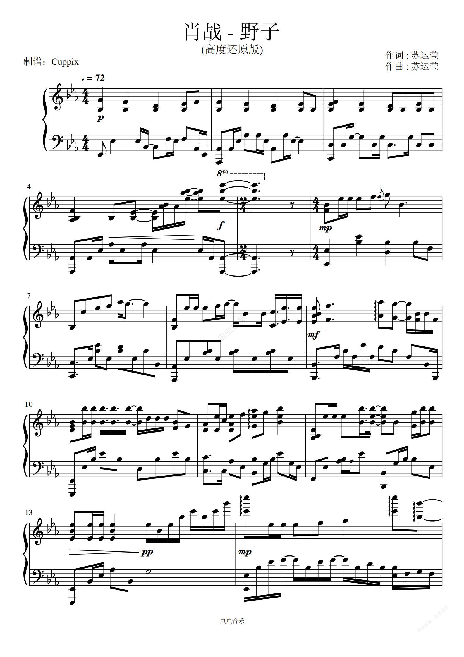 钢琴谱:肖战《野子》Cuppix改编- 高度还原
