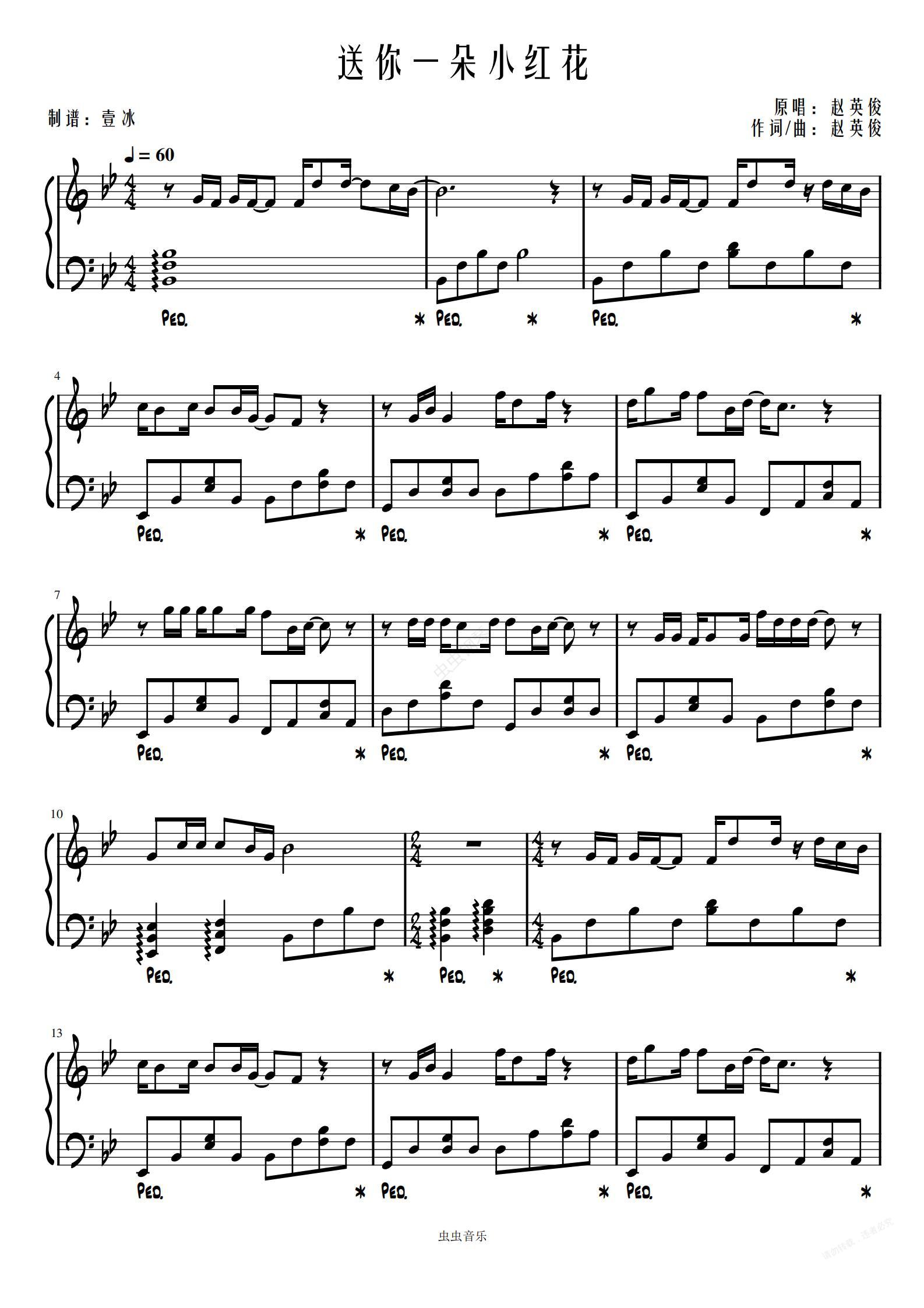 钢琴谱:送你一朵小红花-壹冰钢琴版