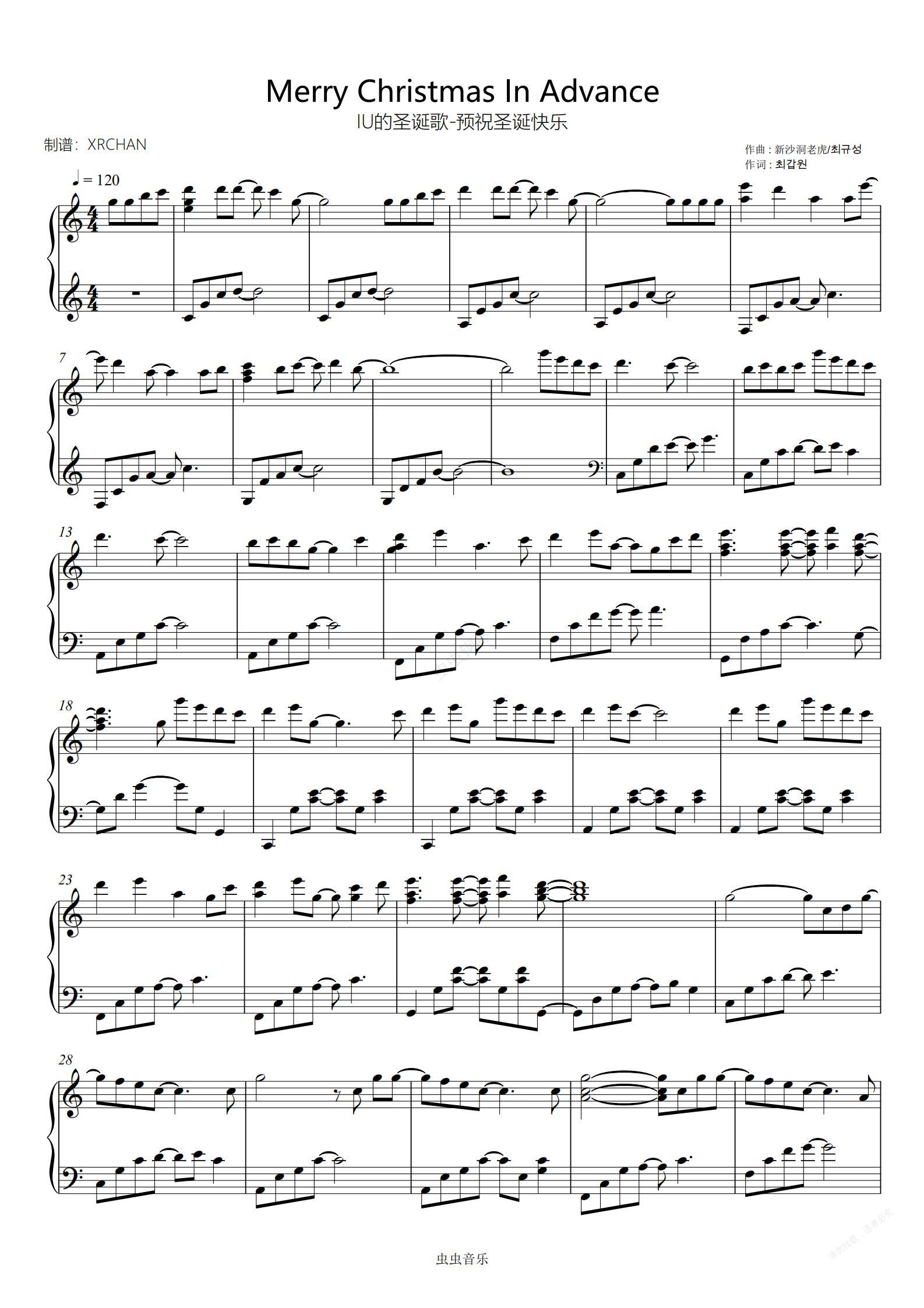 钢琴谱:IU的圣诞歌-预祝圣诞快乐-Merry Christmas In Advance C调简单易弹