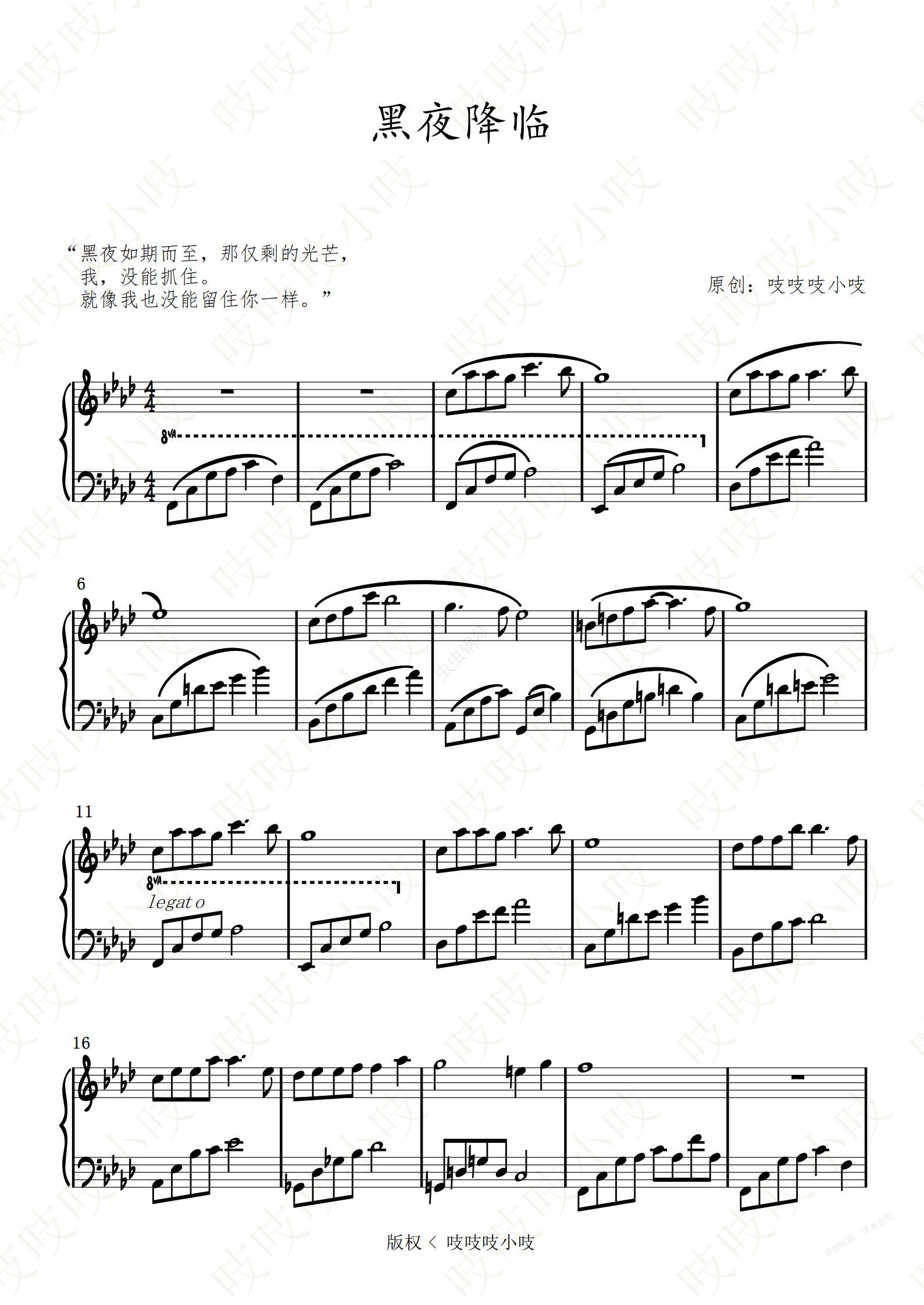 钢琴谱:黑夜降临