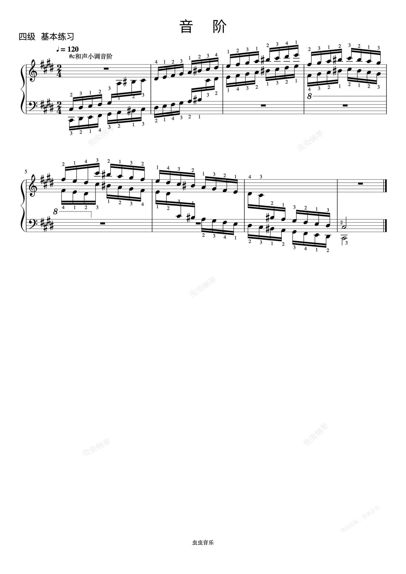 钢琴谱:《 ZYY 钢琴考级曲目 1》 #c和声小调音阶