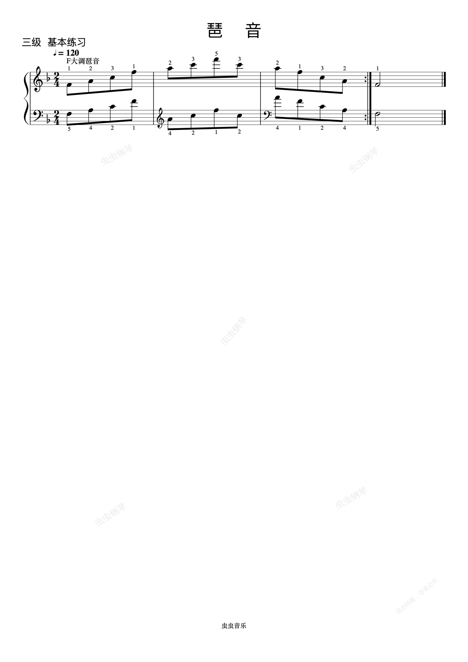 钢琴谱: F大调琶音《 ZYY 钢琴考级曲目 1》