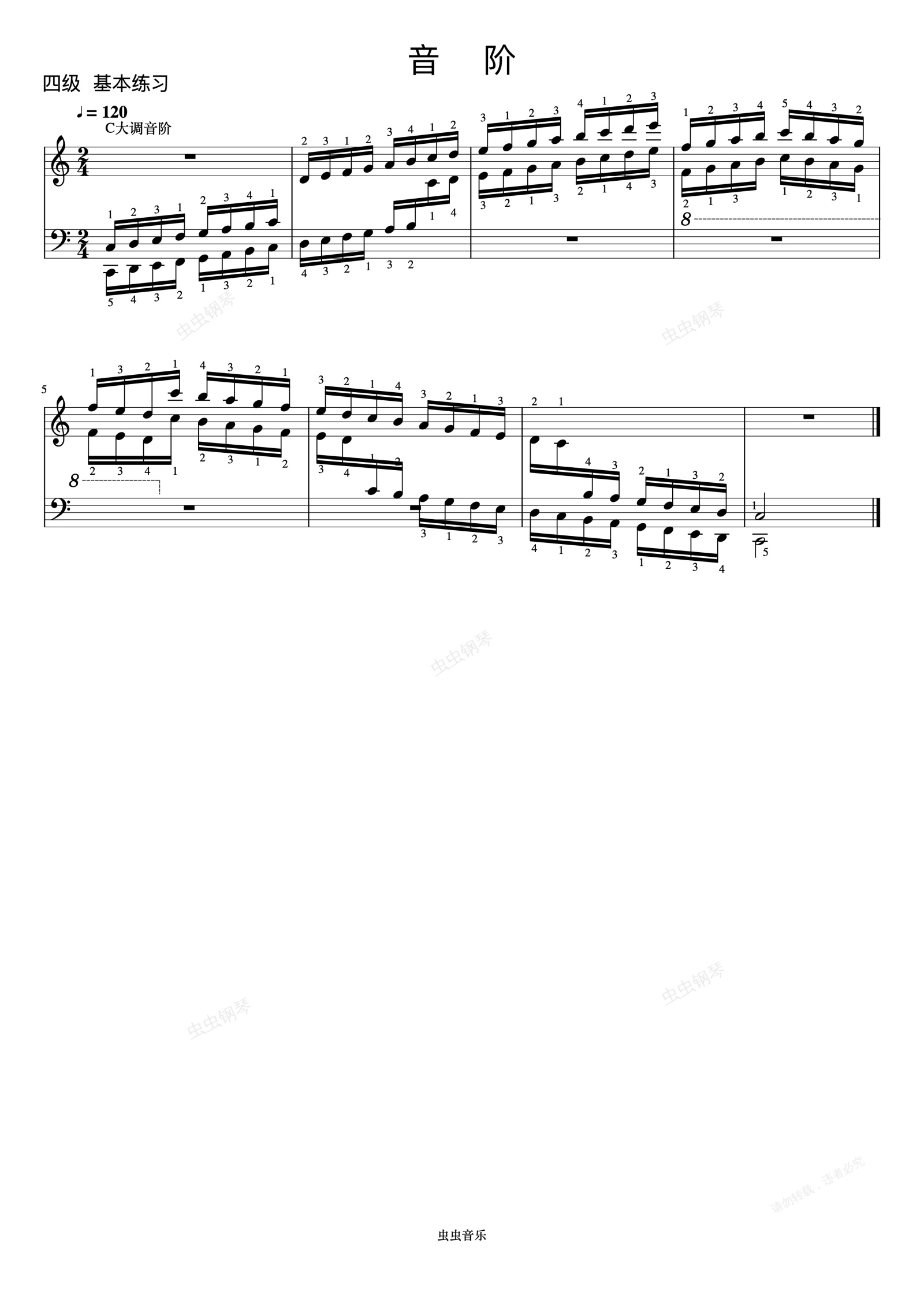 钢琴谱: C大调音阶《 ZYY 钢琴考级曲目 1》