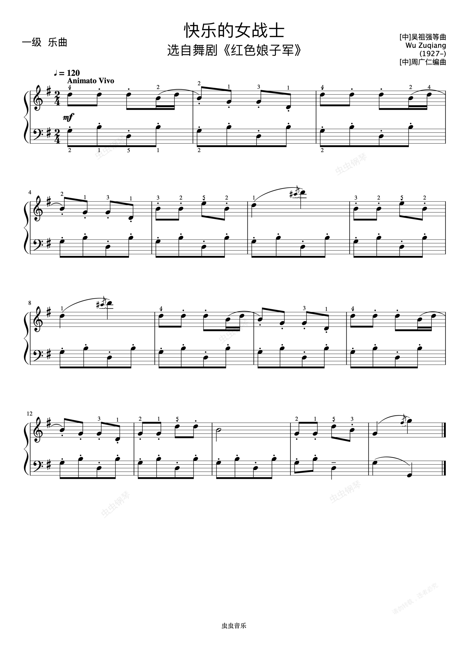钢琴谱: 快乐的女战士《 ZYY 钢琴考级曲目 1》