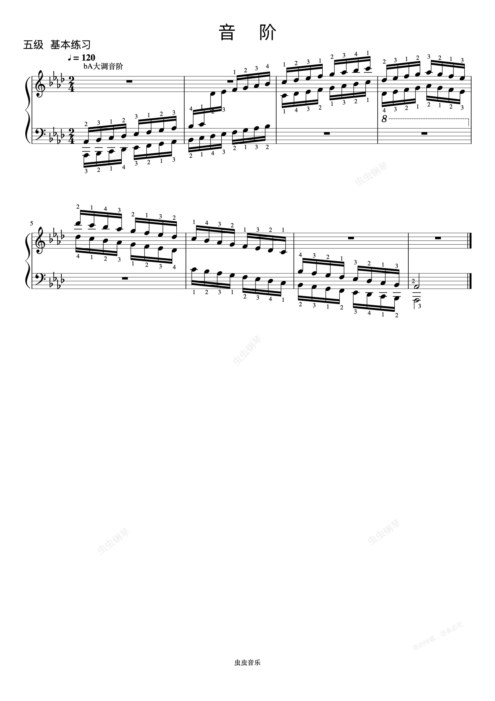 钢琴谱: 降A大调音阶《 ZYY 钢琴考级曲目 1》