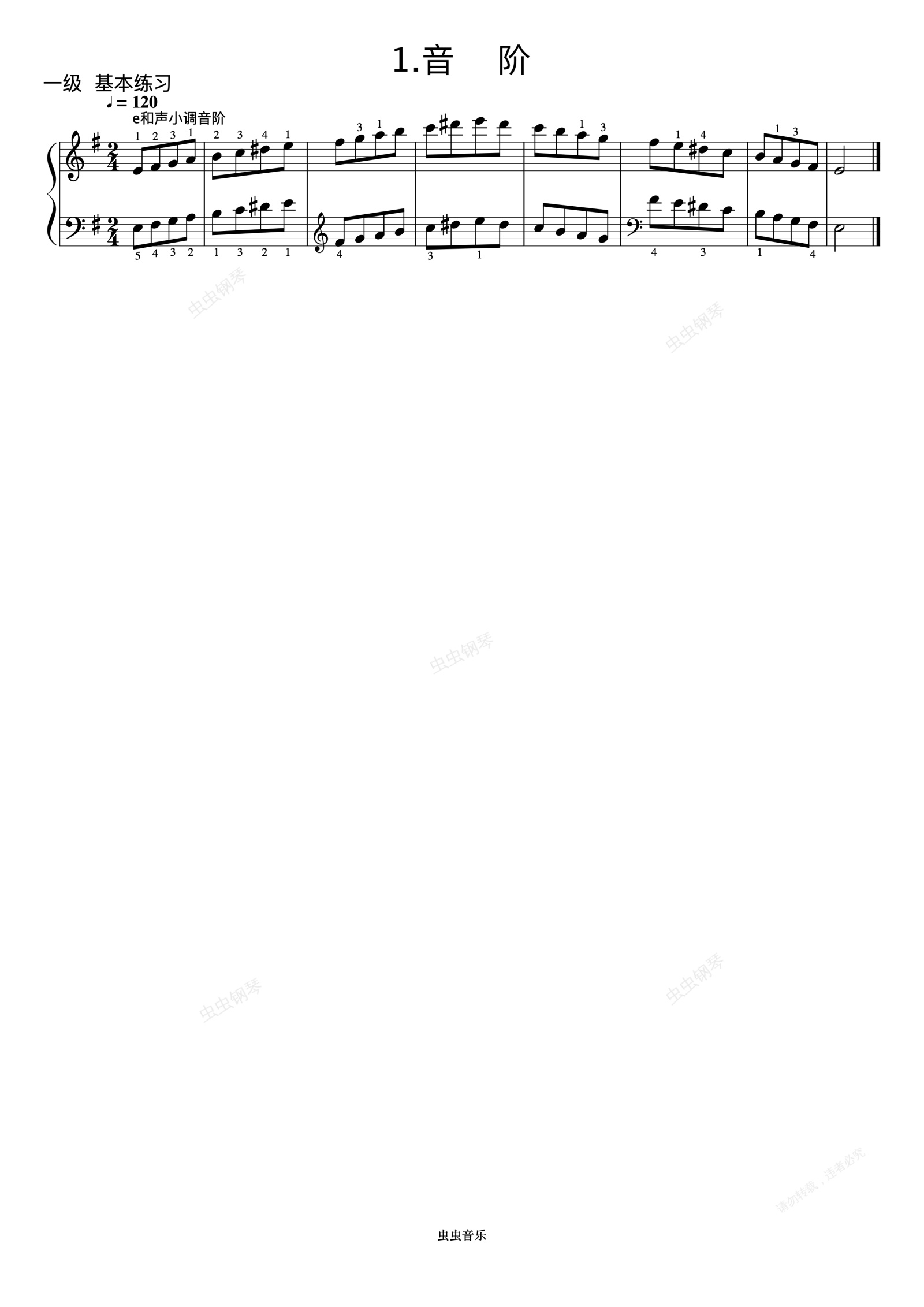 钢琴谱: e和声小调音阶《 ZYY 钢琴考级曲目 1》