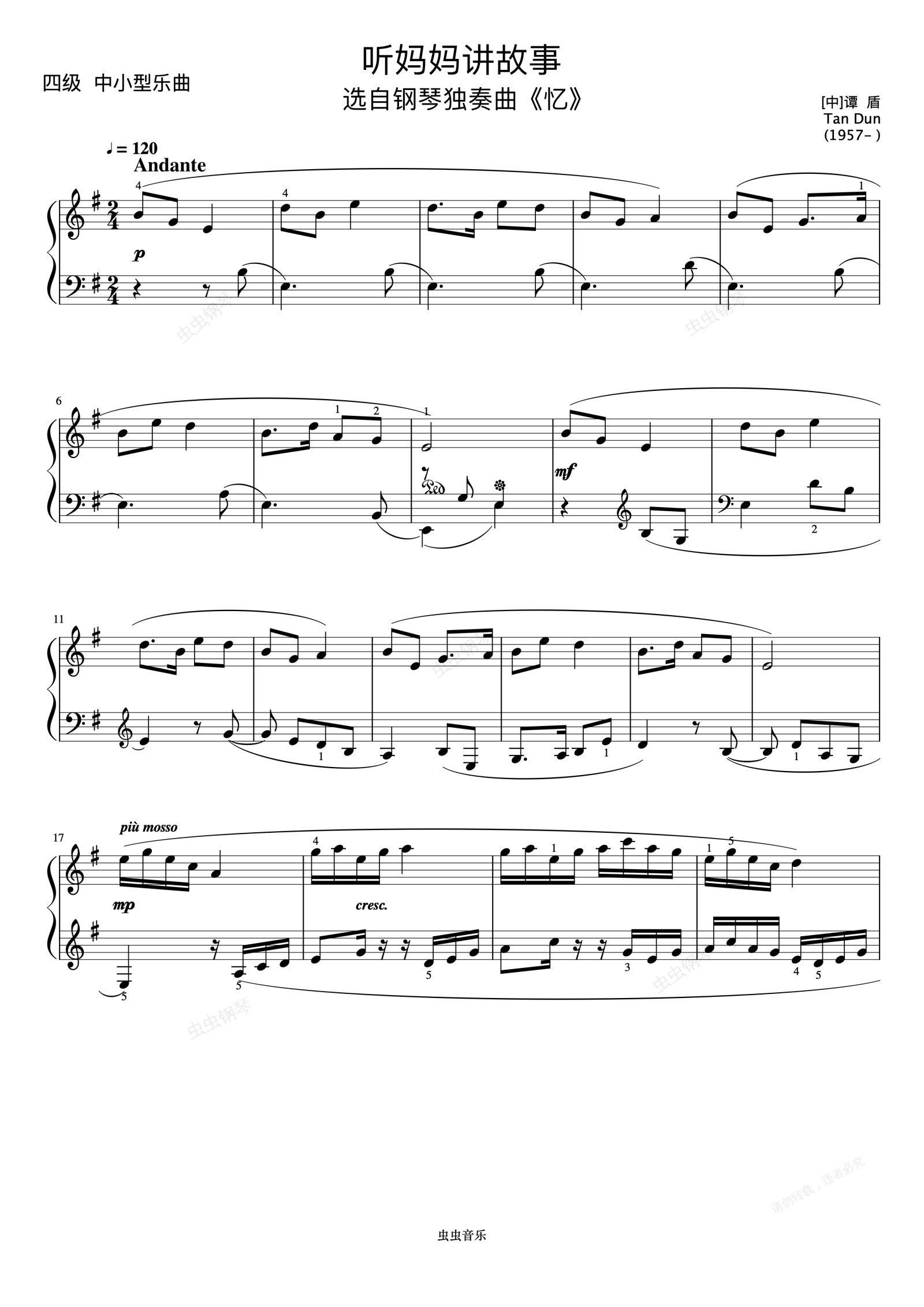 钢琴谱: 听妈妈讲故事《 ZYY 钢琴考级曲目 1》