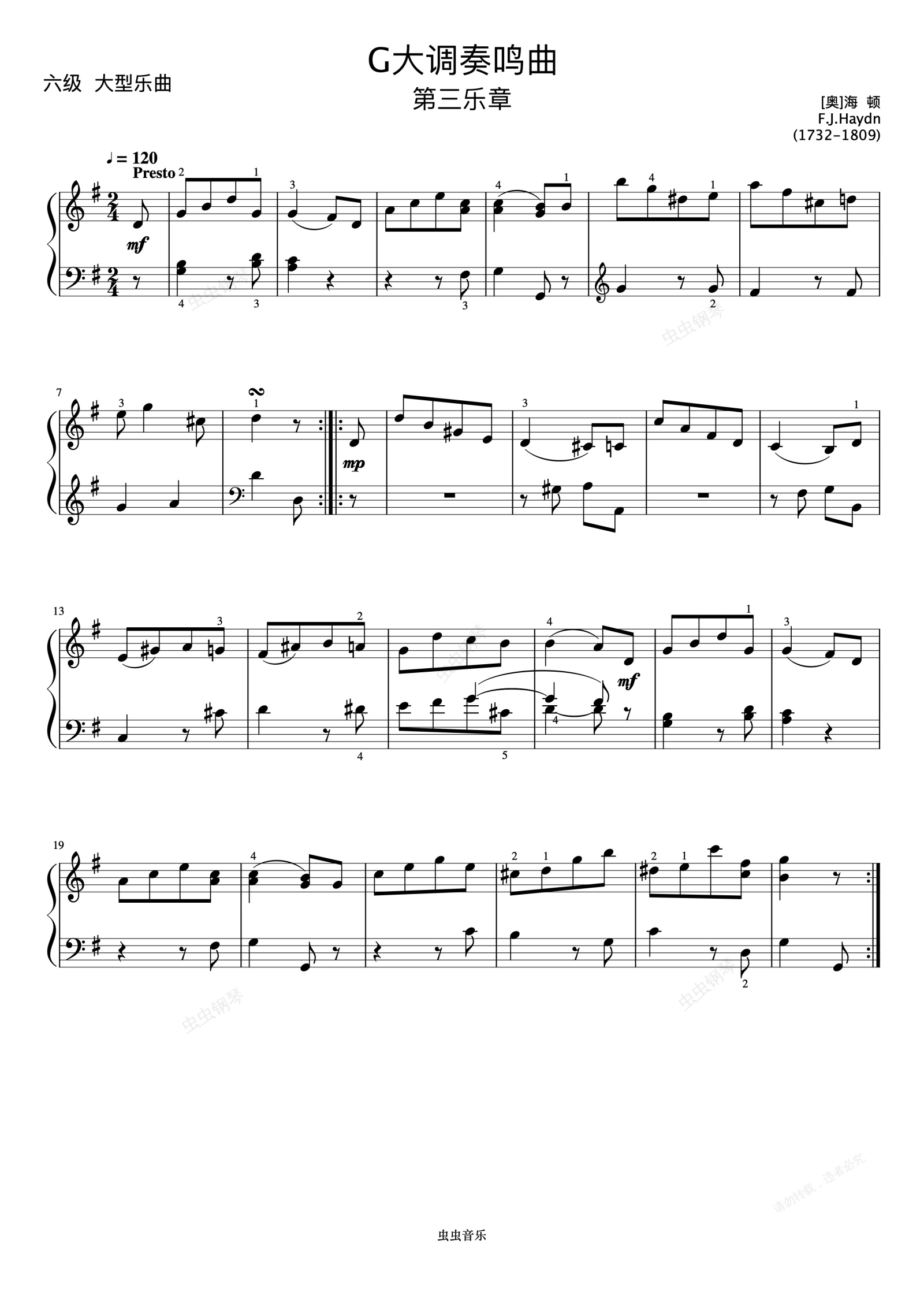 钢琴谱: G大调奏鸣曲 第三乐章《 ZYY 钢琴考级曲目 1》