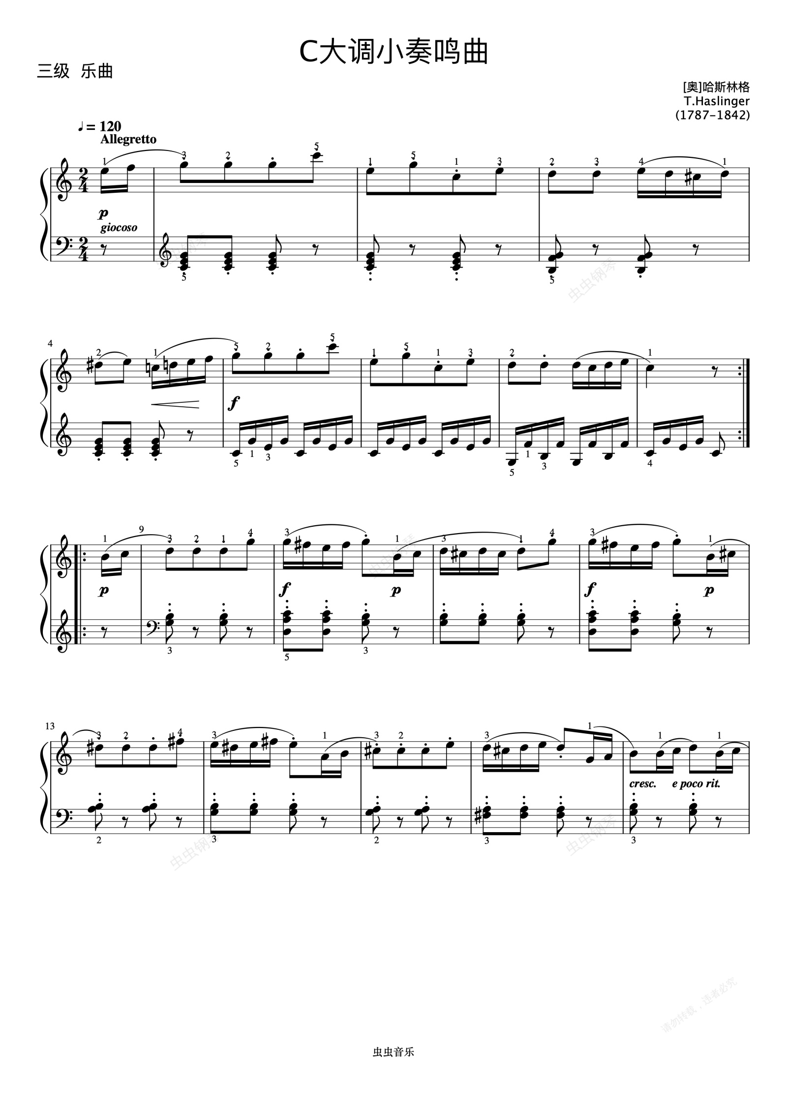 钢琴谱: C大调小奏鸣曲《 ZYY 钢琴考级曲目 1》