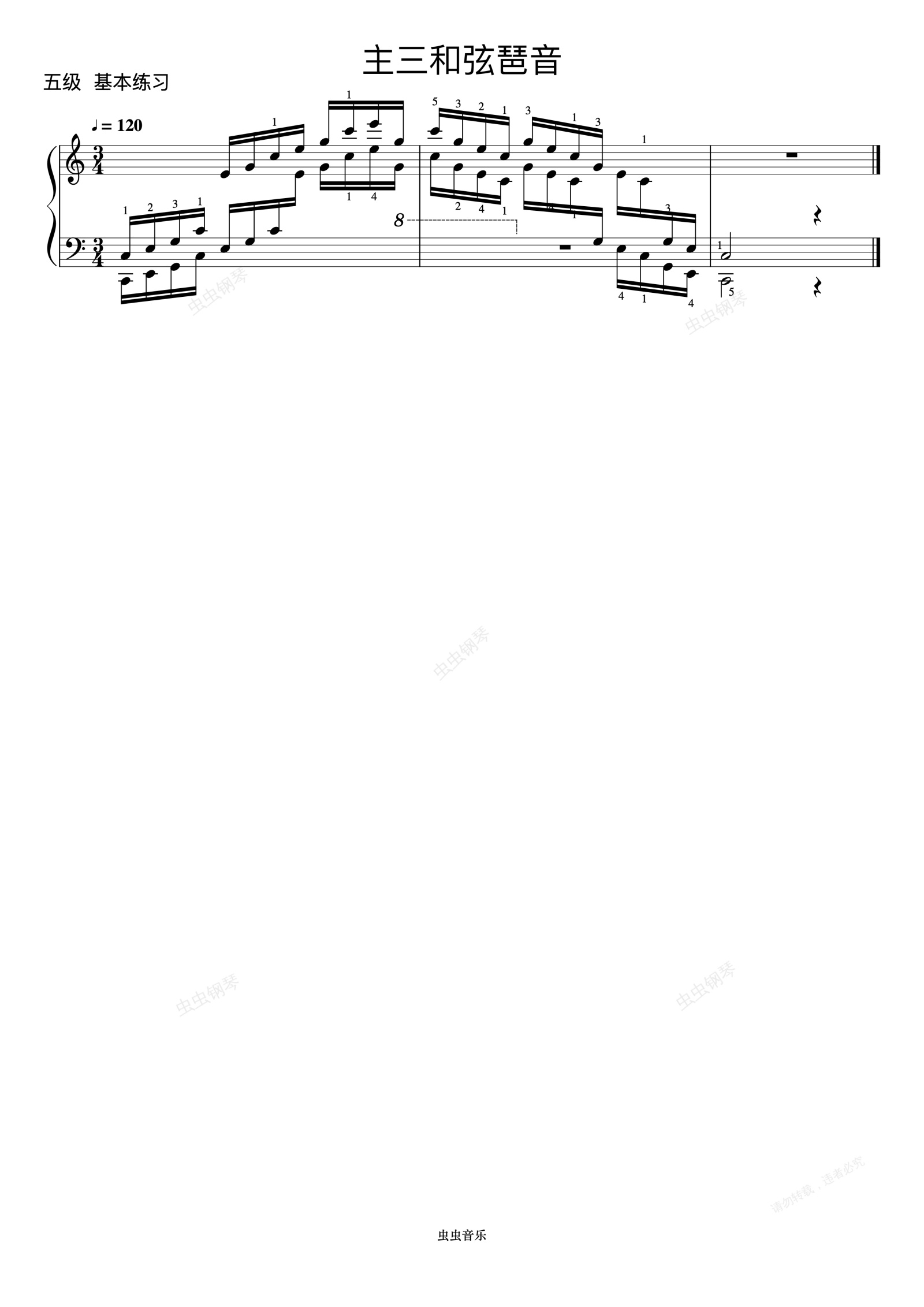 钢琴谱: C大调主三和弦琶音《 ZYY 钢琴考级曲目 1》
