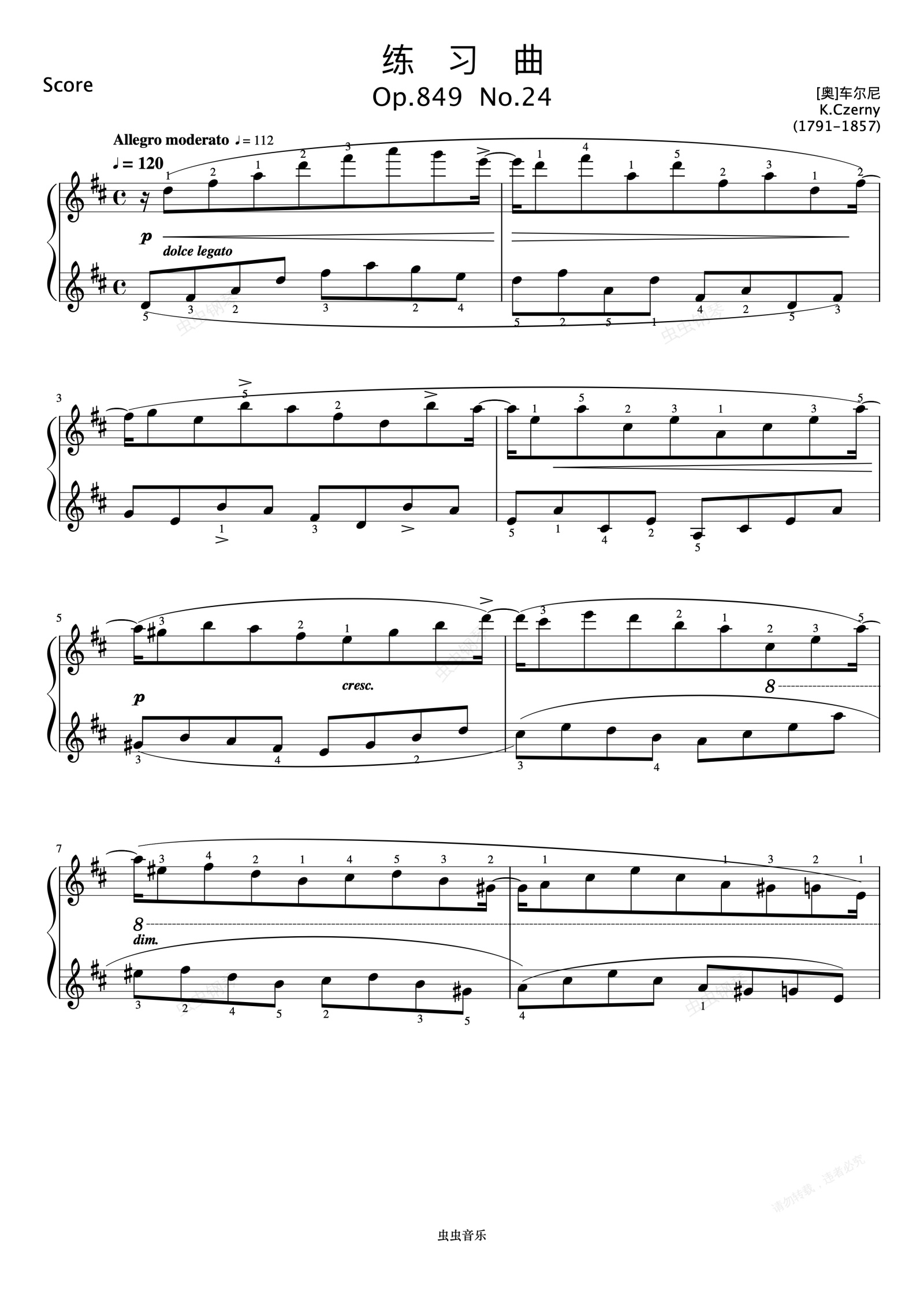钢琴谱: 练习曲 Op.849 No.24《 ZYY 钢琴考级曲目 1》