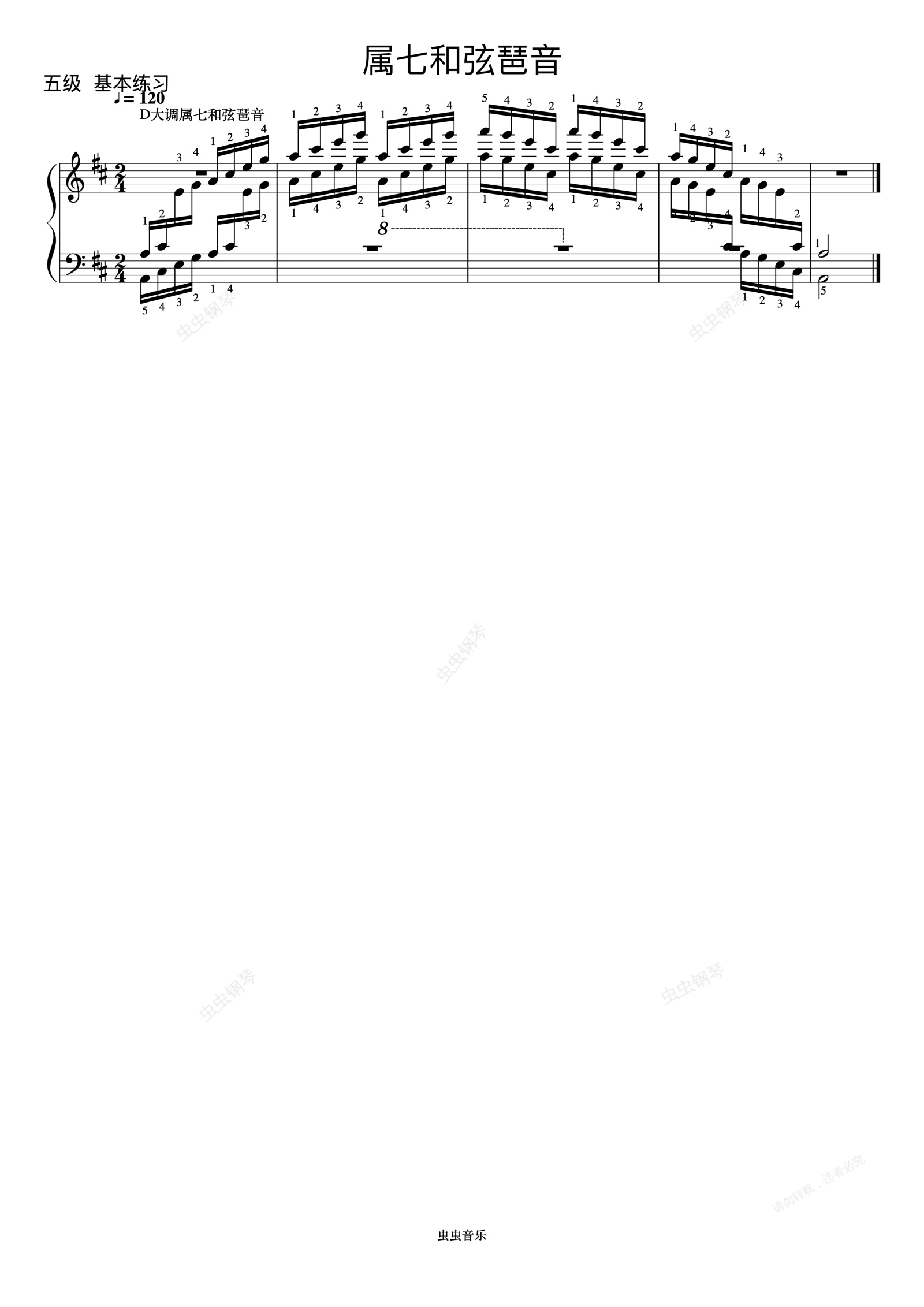 钢琴谱: D大调属七和弦琶音《 ZYY 钢琴考级曲目 1》