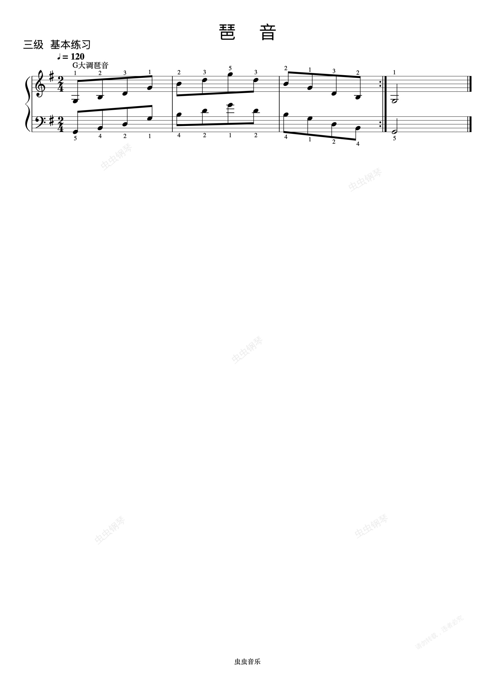 钢琴谱: G大调琶音《 ZYY 钢琴考级曲目 1》