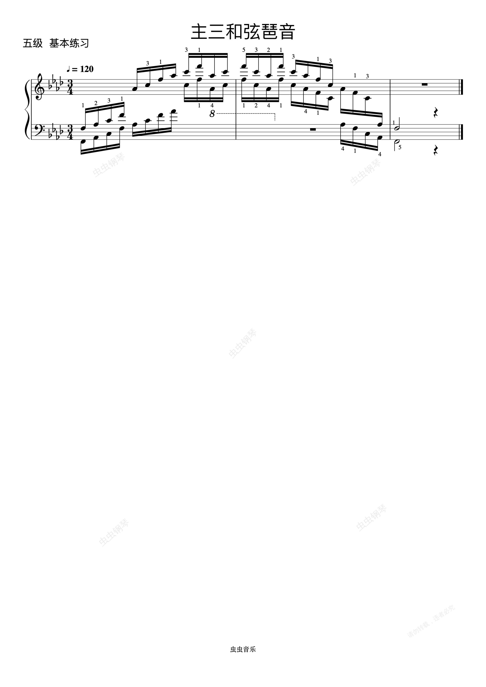 钢琴谱: f小调主三和弦琶音《 ZYY 钢琴考级曲目 1》