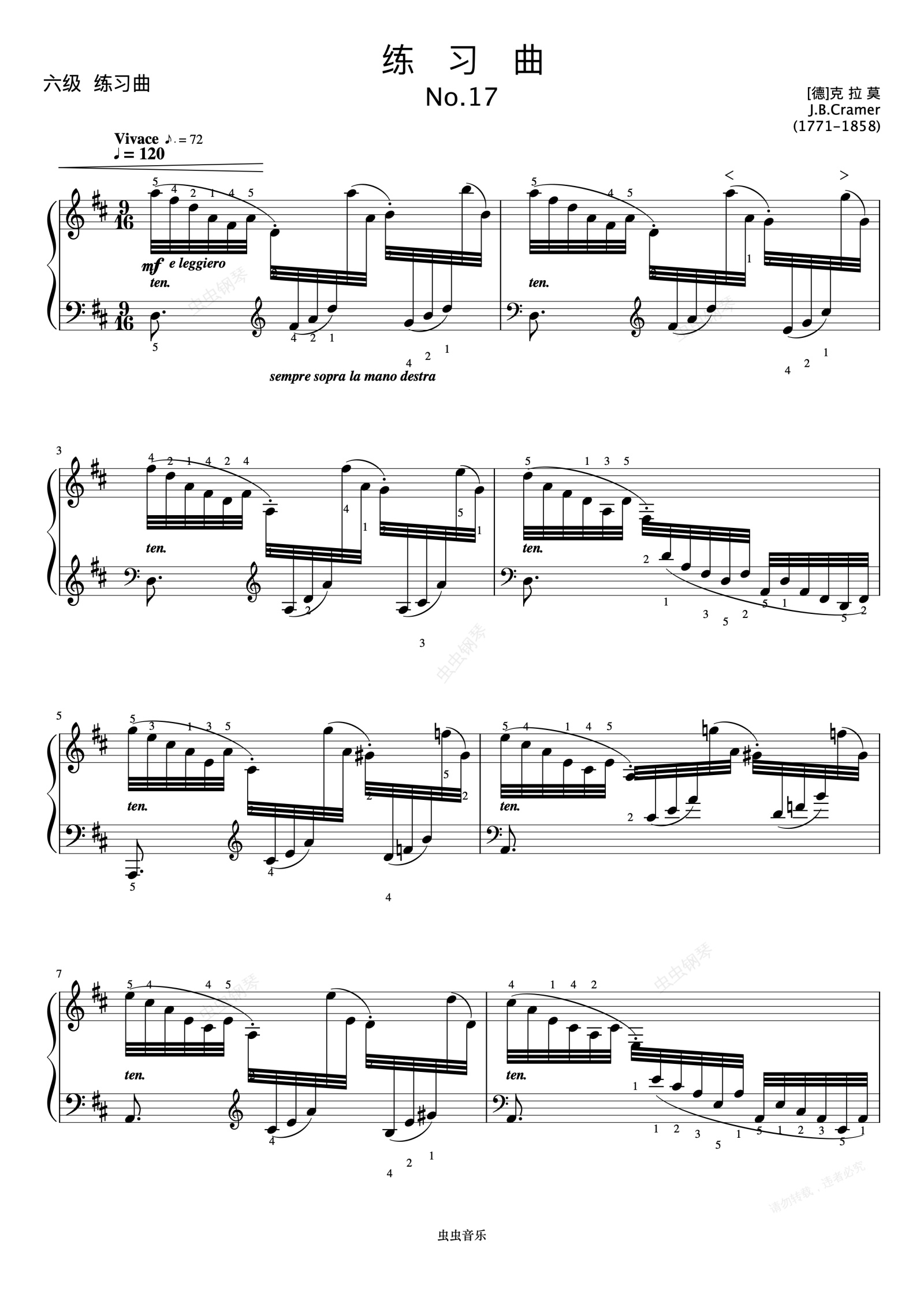 钢琴谱: 练习曲 No.17《 ZYY 钢琴考级曲目 1》