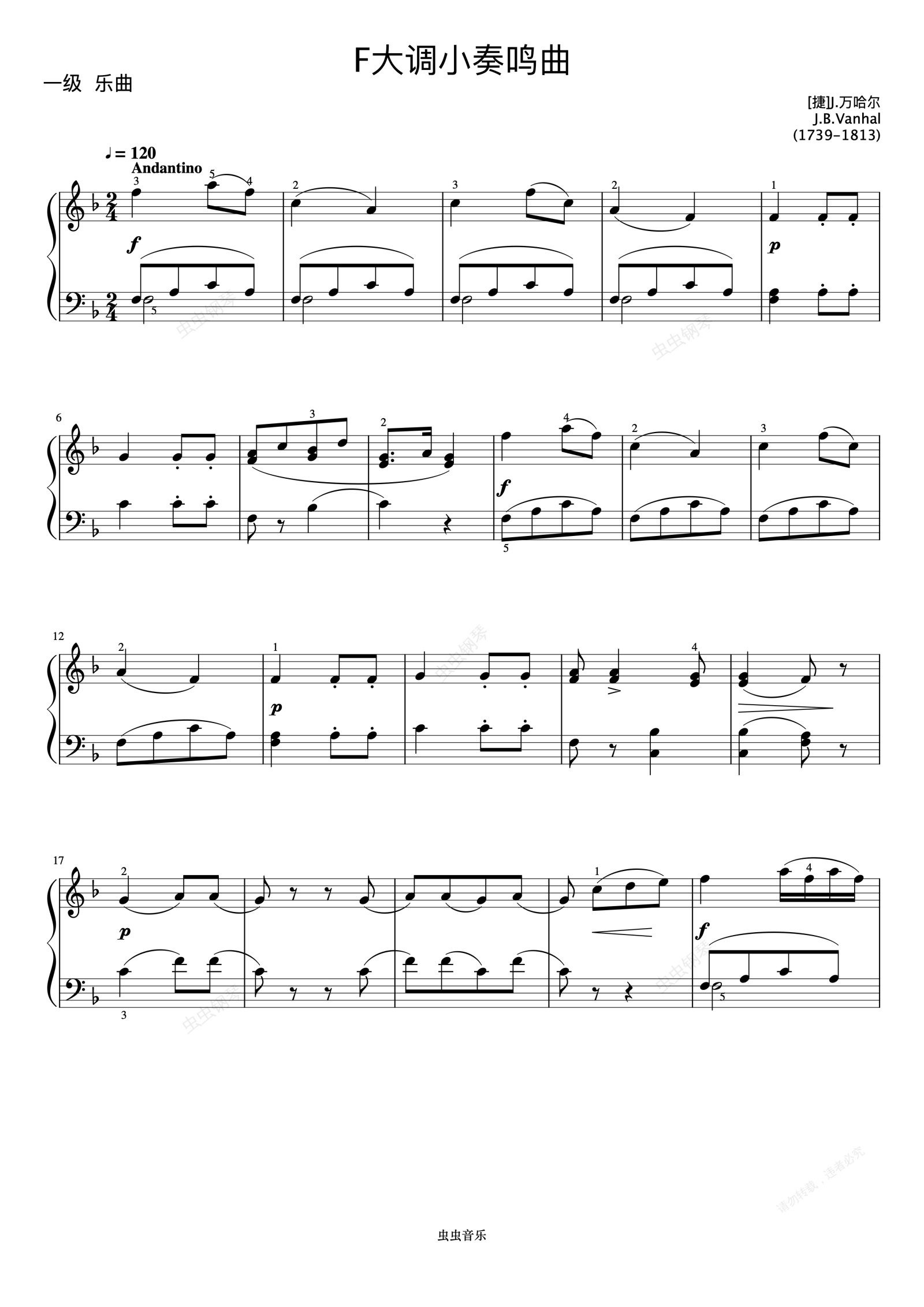 钢琴谱: F大调小奏鸣曲 第一乐章 Op.41 No.2《 ZYY 钢琴考级曲目 1》