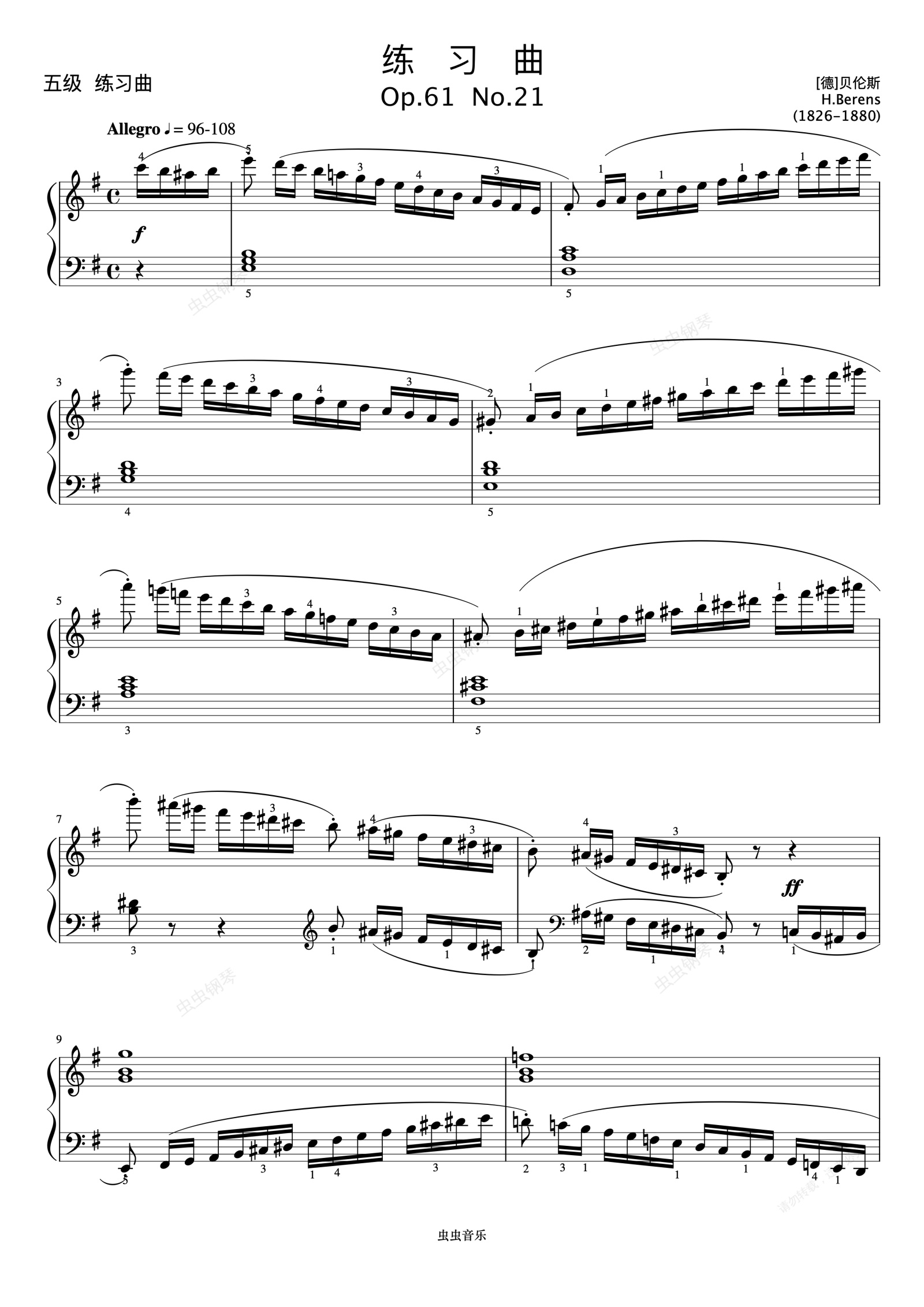 钢琴谱: 练习曲Op.61 No.21《 ZYY 钢琴考级曲目 1》