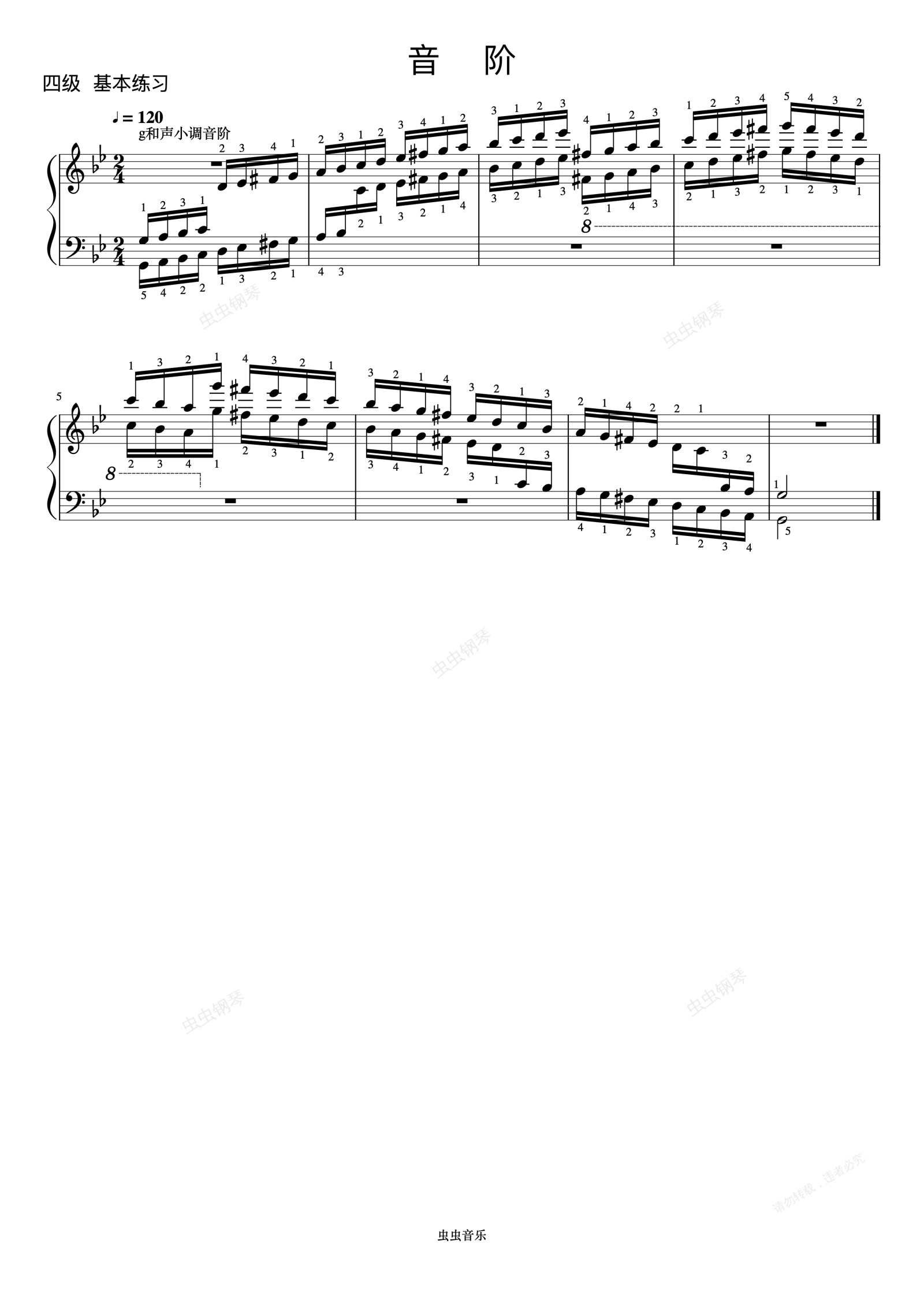 钢琴谱: g和声小调音阶《 ZYY 钢琴考级曲目 1》