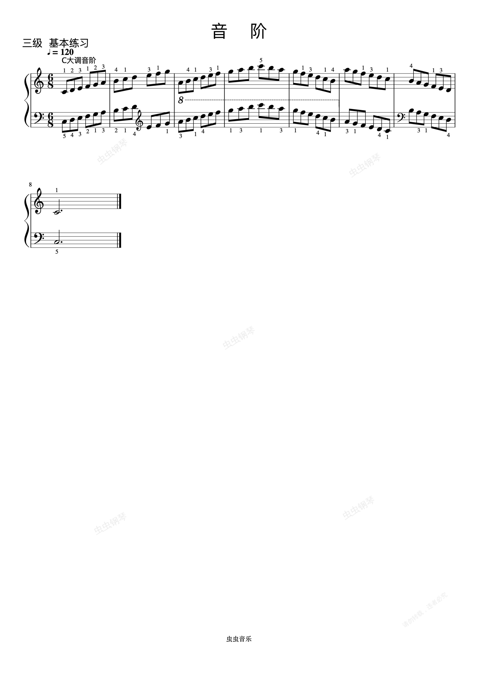 钢琴谱: C大调音阶《 ZYY 钢琴考级曲目 1》