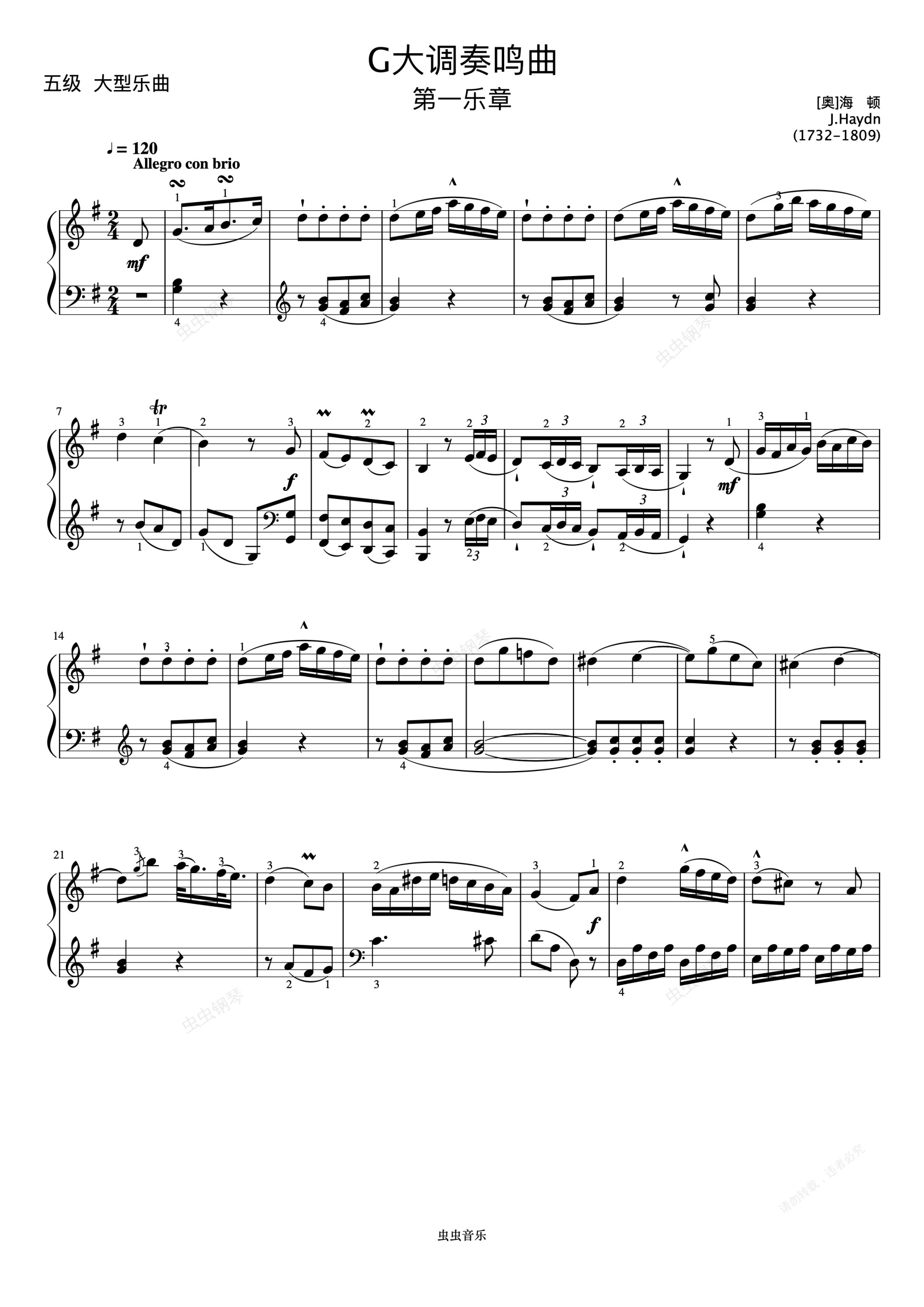钢琴谱: G大调奏鸣曲 第一乐章《 ZYY 钢琴考级曲目 1》