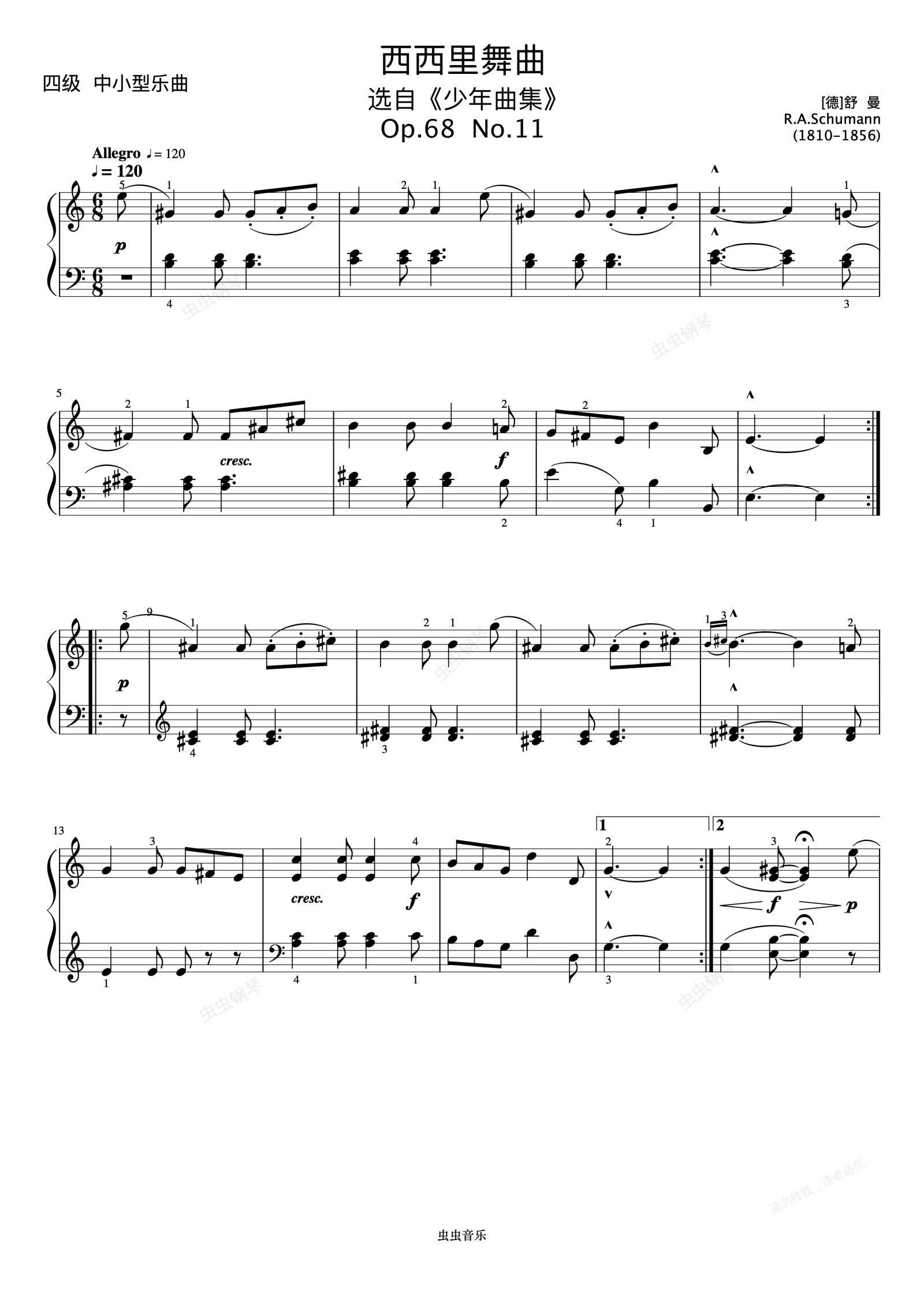 钢琴谱: 西西里舞曲《 ZYY 钢琴考级曲目 1》