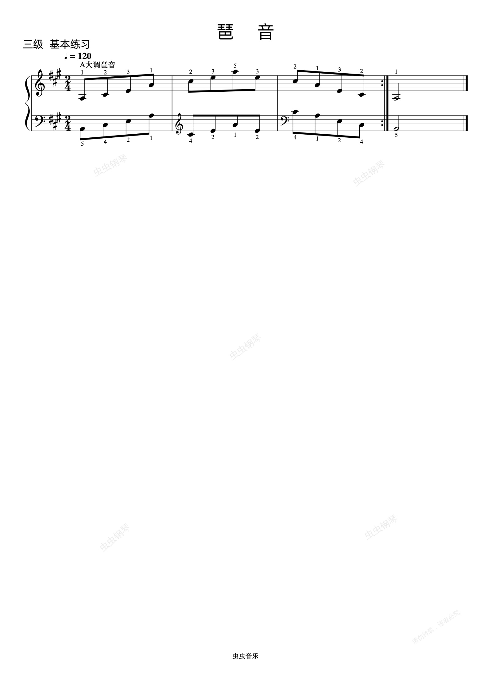 钢琴谱: A大调琶音《 ZYY 钢琴考级曲目 1》