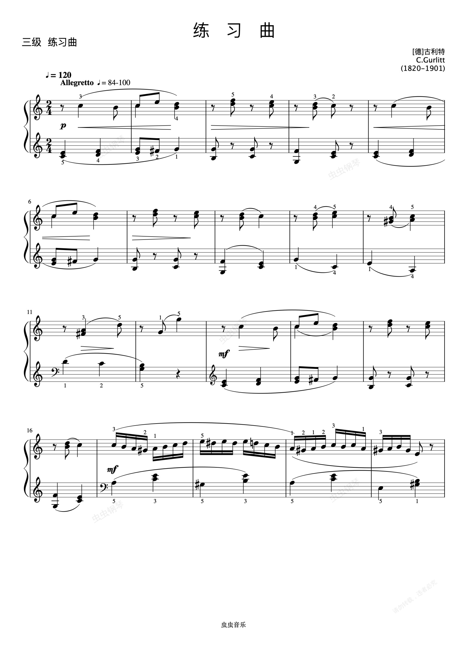 钢琴谱: 练习曲《 ZYY 钢琴考级曲目 1》