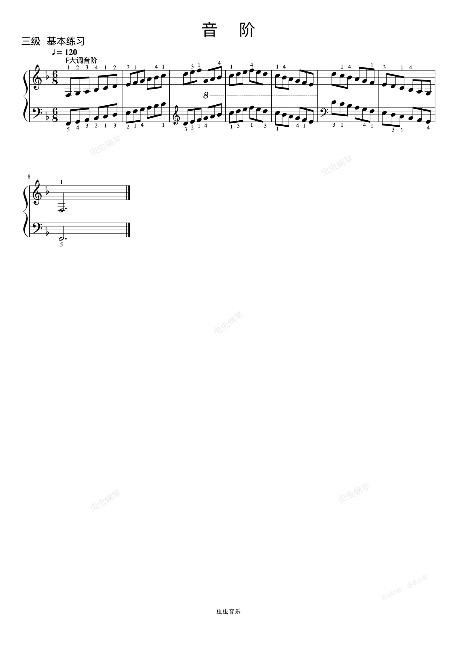 钢琴谱: F大调音阶《 ZYY 钢琴考级曲目 1》