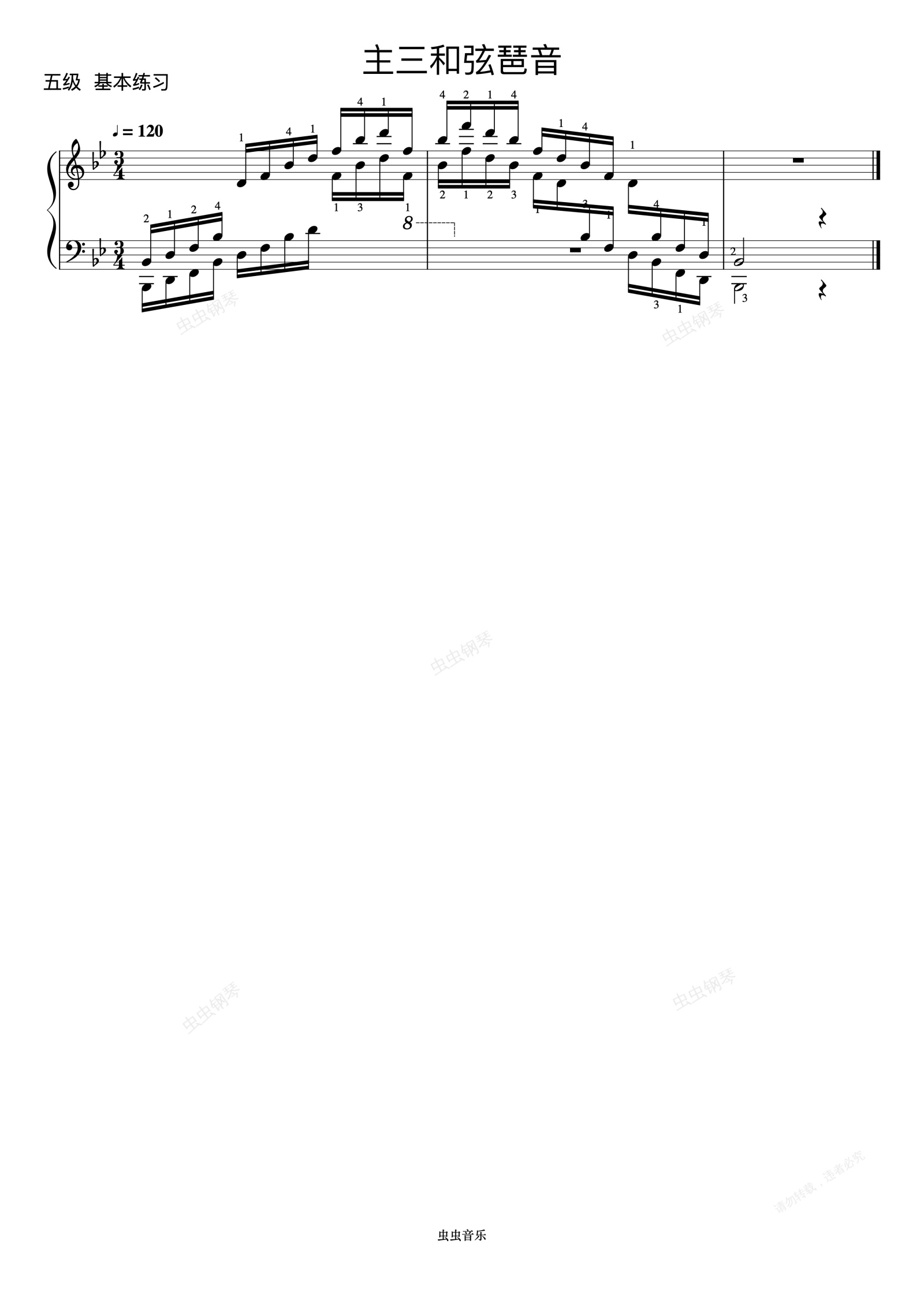 钢琴谱: 降B大调主三和弦琶音《 ZYY 钢琴考级曲目 1》