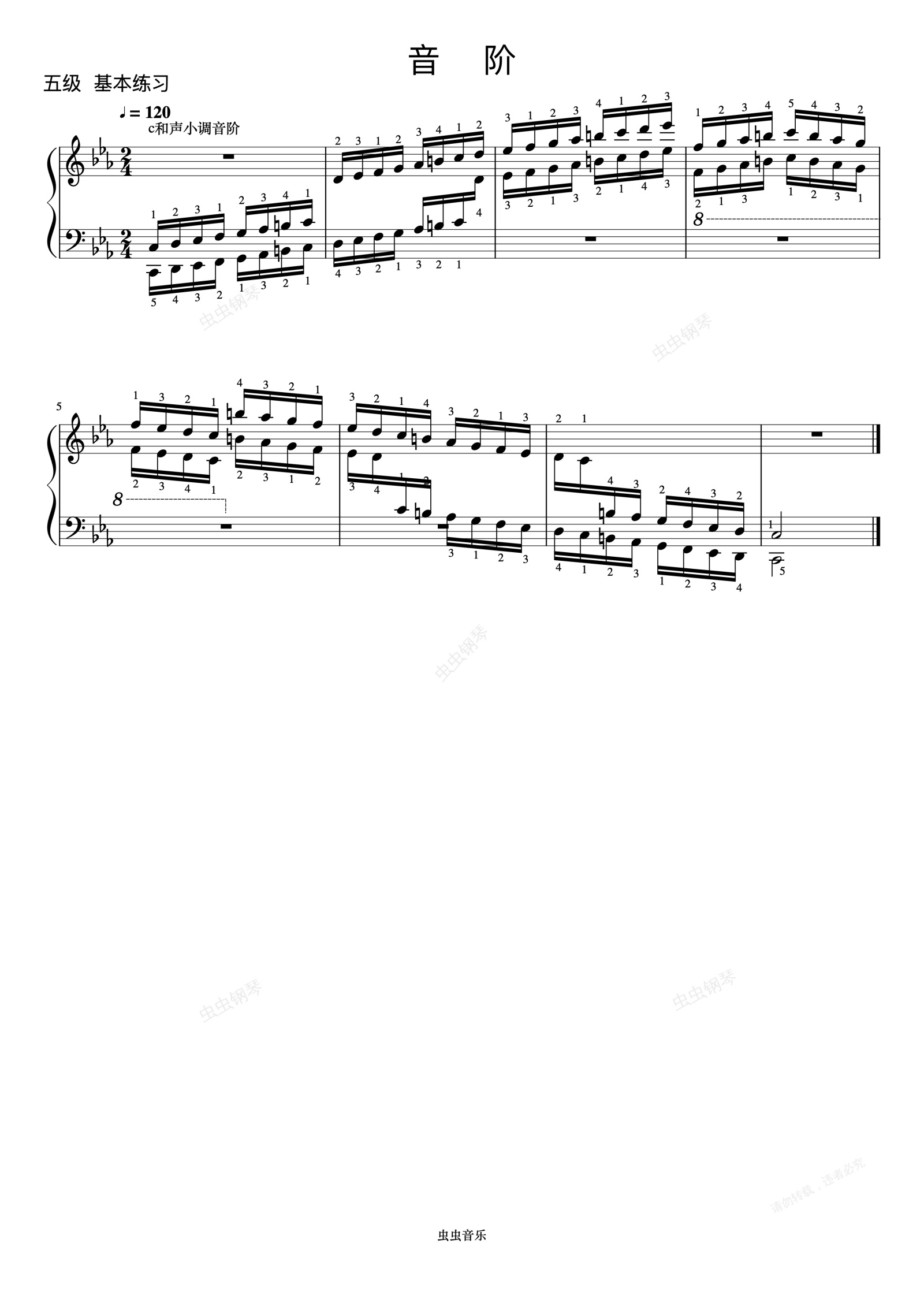 钢琴谱: c和声小调音阶《 ZYY 钢琴考级曲目 1》