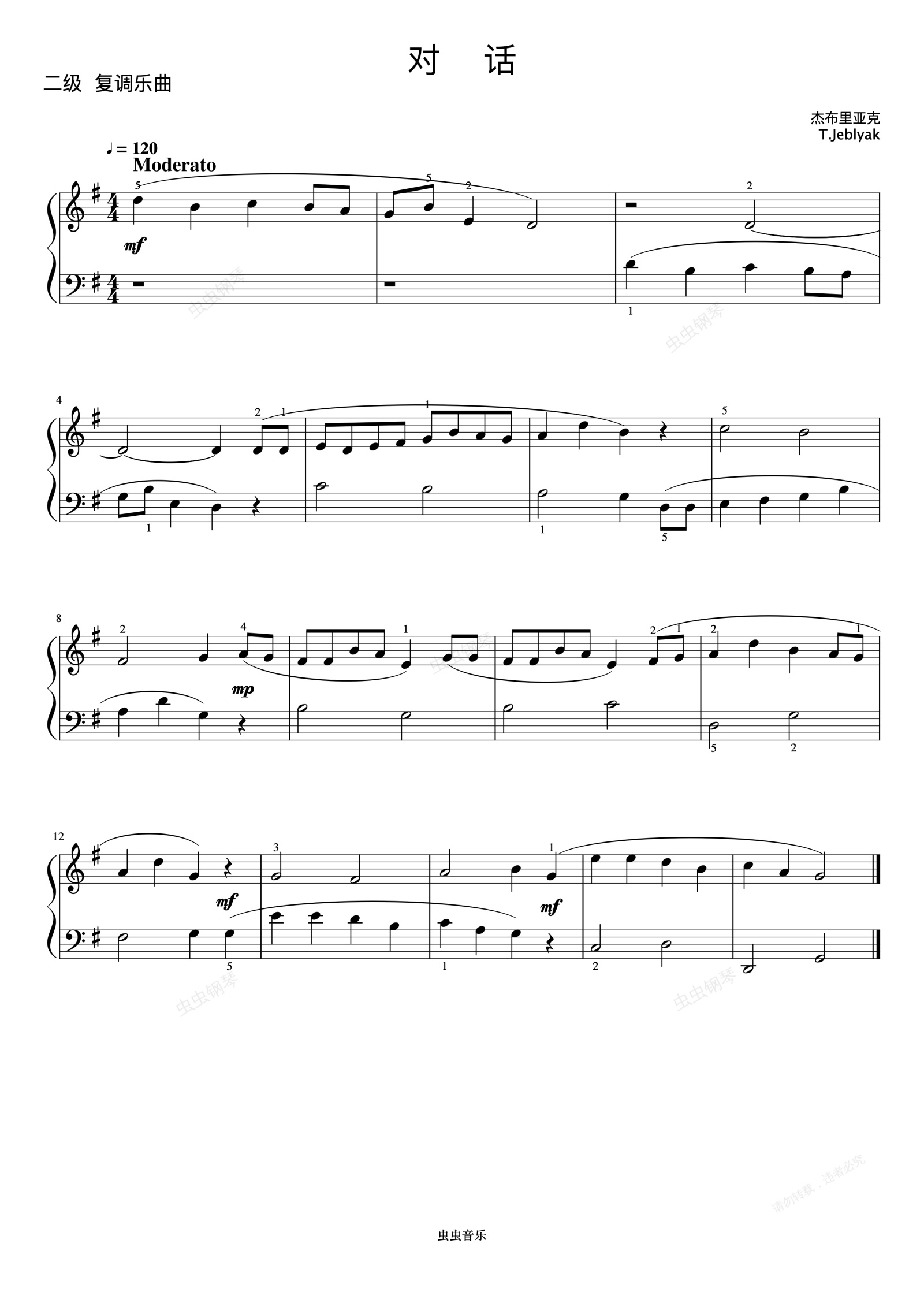 钢琴谱: 对话《 ZYY 钢琴考级曲目 1》