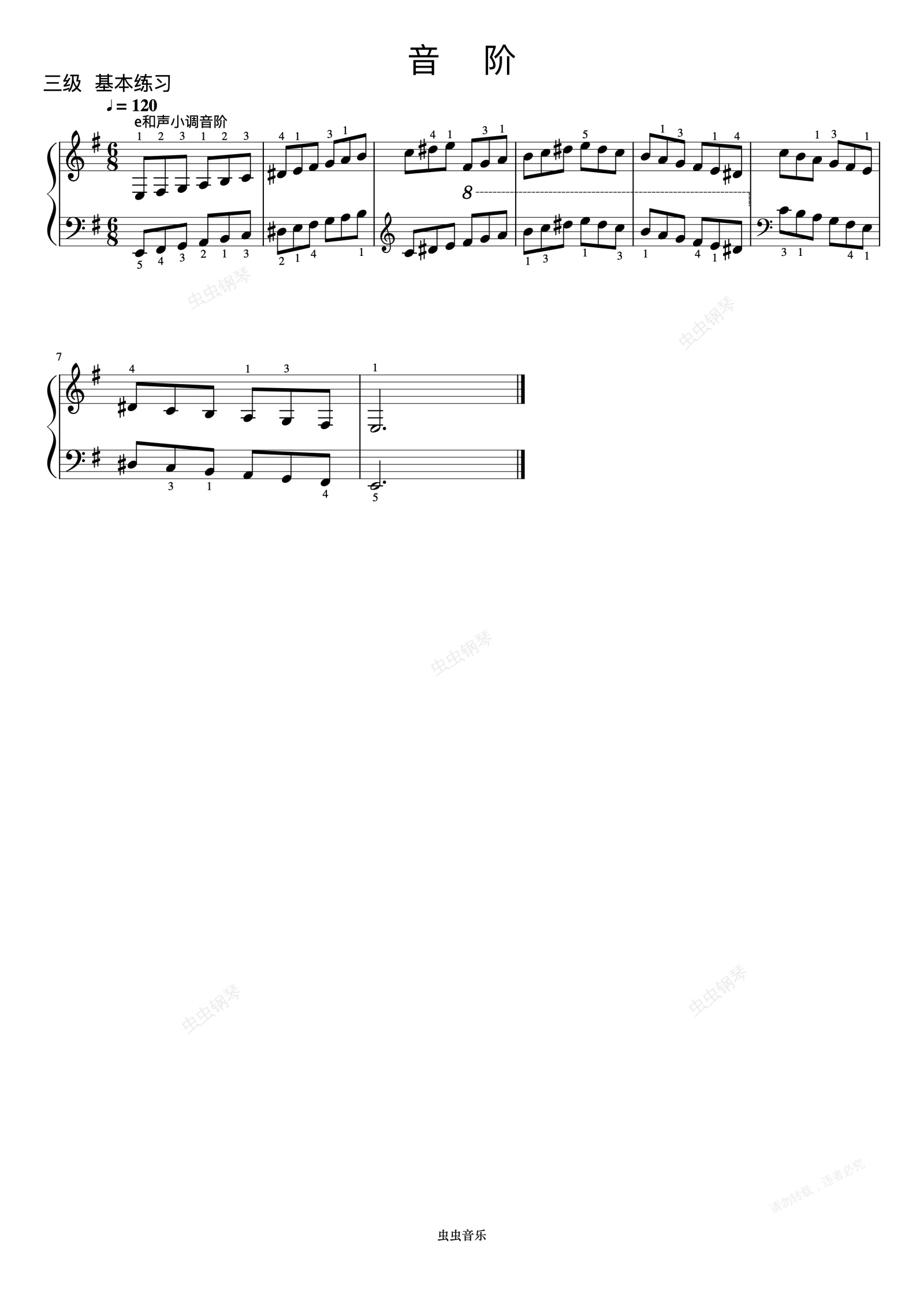 钢琴谱: e和声小调音阶《 ZYY 钢琴考级曲目 1》