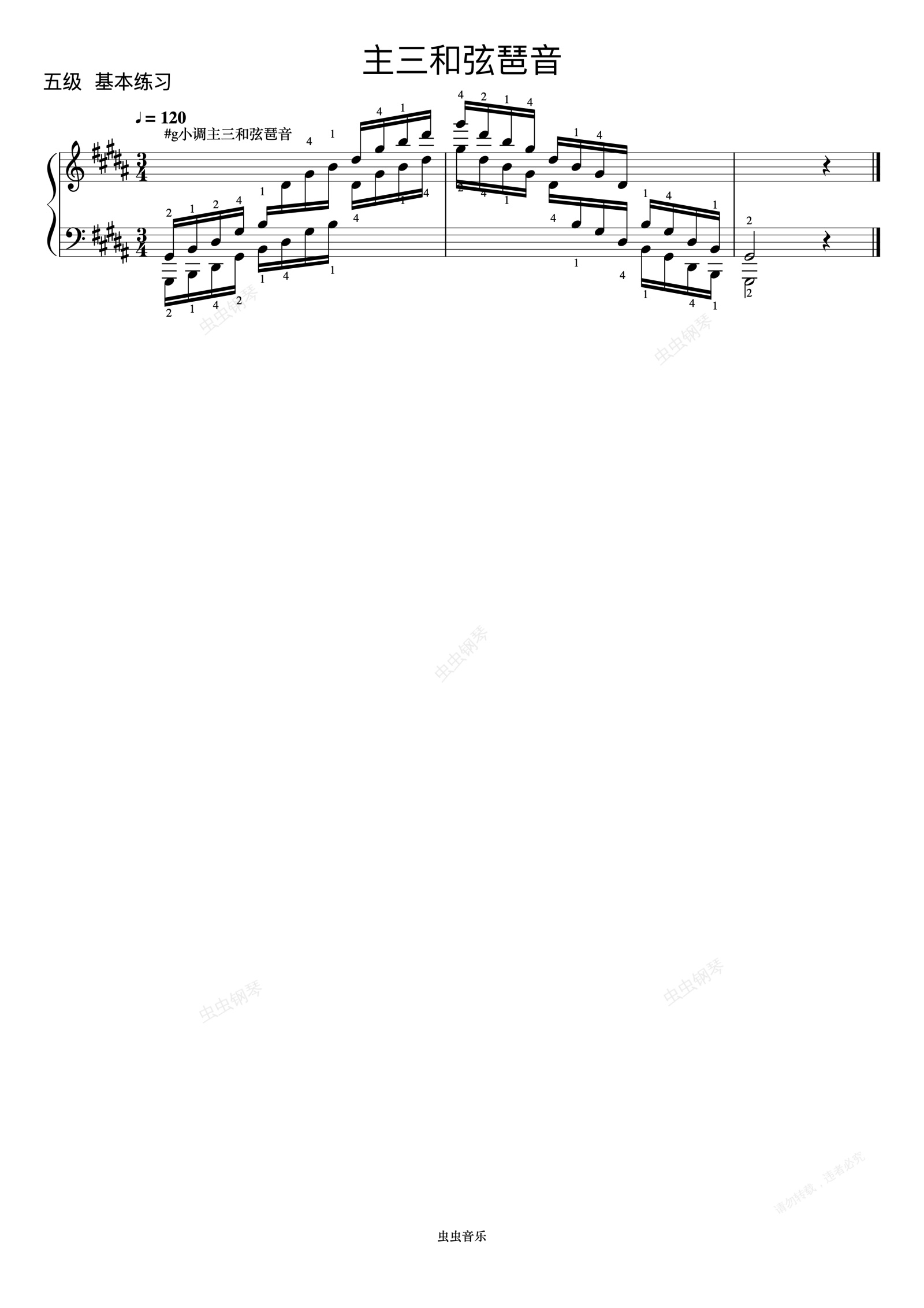 钢琴谱:《 ZYY 钢琴考级曲目 1》 #g小调主三和弦琶音
